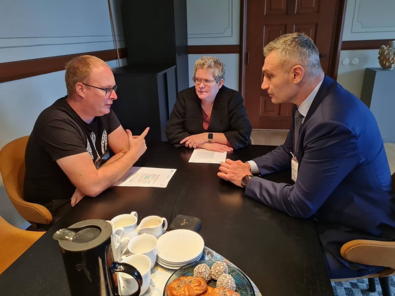 Мер Києва Віталій Кличко зустрівся у Стокгольмі з мером шведської столиці Карін Ваннгард. Обговорили подальшу співпрацю двох міст. Зокрема, в реалізації спільних проектів із майбутньої відбудови Києва та в гуманітарній сфері. Про це Кличко повідомив на своїй сторінці у Facebook.