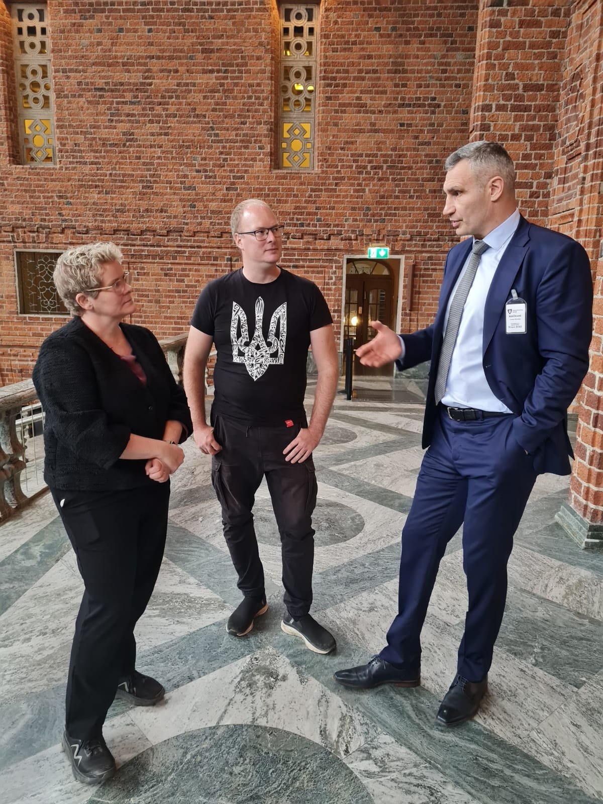 «Зустрівся з мером Стокгольму Карін Ваннгард. Столиця Швеції — місто побратим нашої столиці. Подякував пані Ваннгард за підтримку Києва та України. За допомогу українцям, які, рятуючись від війни, знайшли тимчасовий прихисток у Стокгольмі, зазначив мер Києва. – Також обговорили подальшу співпрацю наших міст. Зокрема, в реалізації спільних проектів. І з майбутньої відбудови Києва, і допомогу в гуманітарній сфері, в соціальній. Також нас цікавить досвід Швеції і фахівці з реабілітації військових і ветеранів», – написав Віталій Кличко.