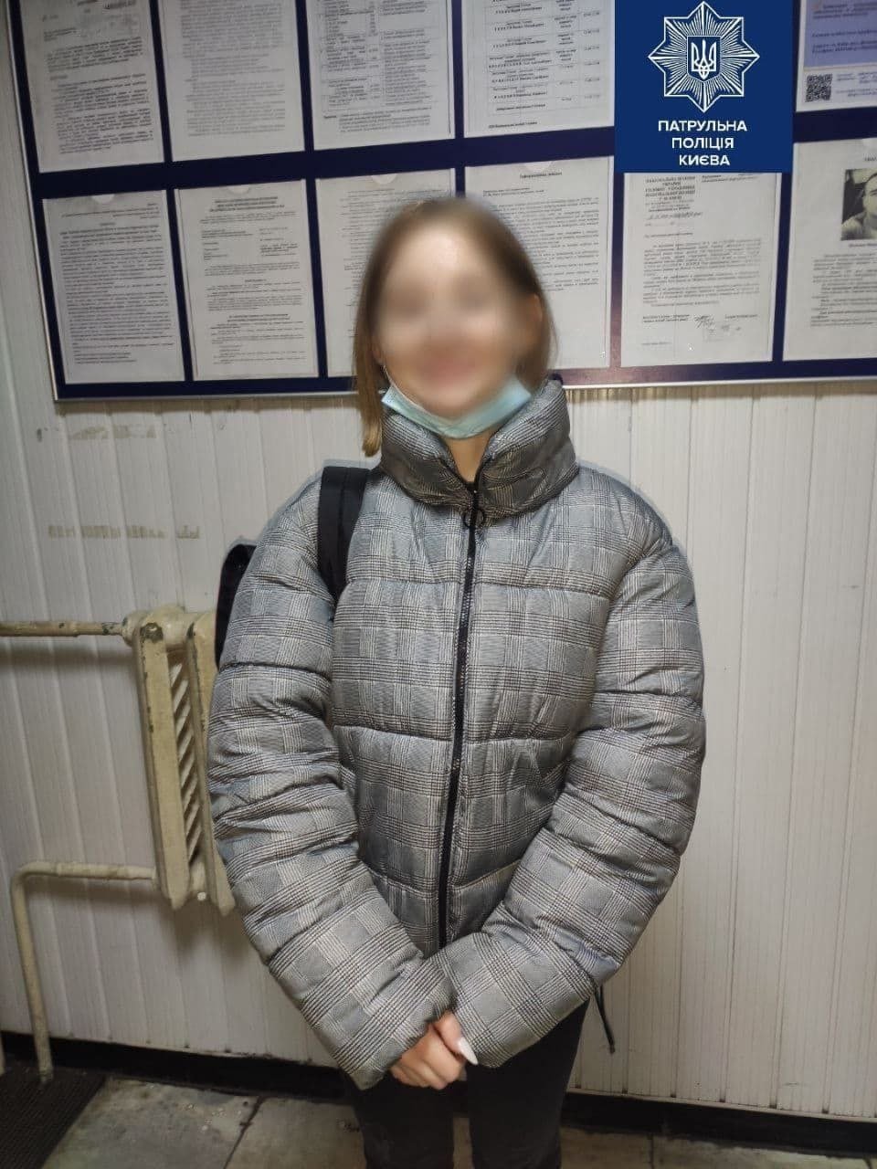 Патрульні затримали її та доставили до Святошинського управління поліції для з'ясування обставин події та надання правової кваліфікації її діям.