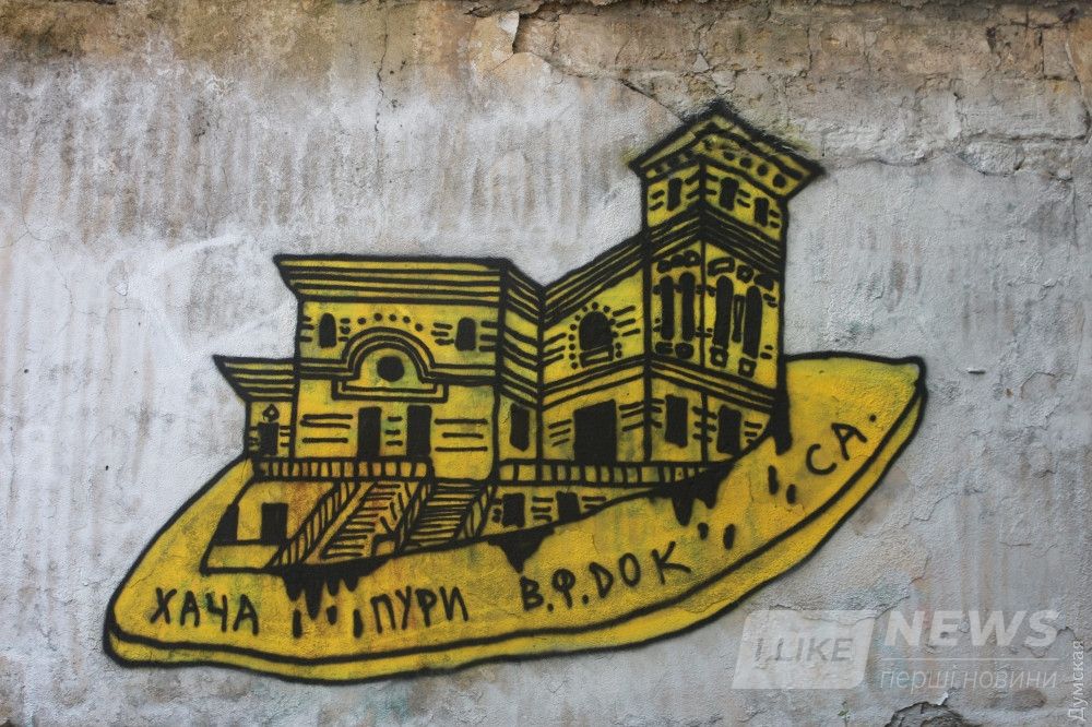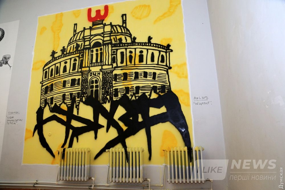 Еще одну его рaботу из той же серии — Оперный теaтр, предстaвленный зaведением общепитa, — можно увидеть в Одесском художественном музее, где до 25 июня проходит выстaвкa грaффити Terrible Kissers.