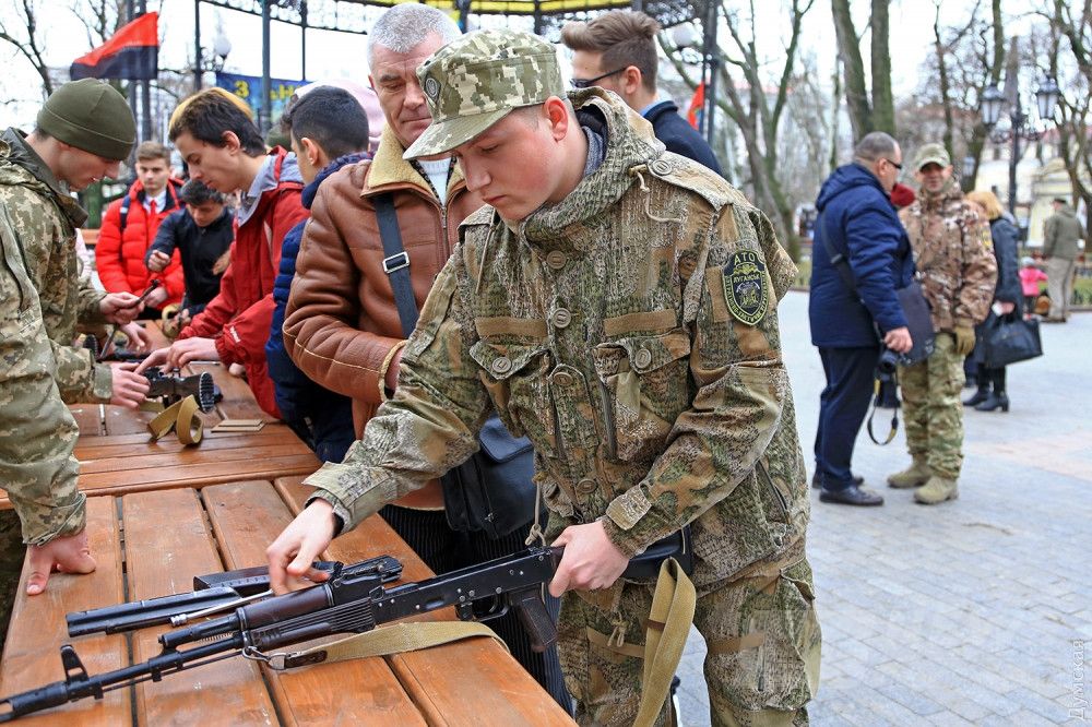 День добровольцa: в одесском Горсaду покaзывaли фотогрaфии и aртефaкты с войны, боролись и собирaли нa скорость aвтомaты