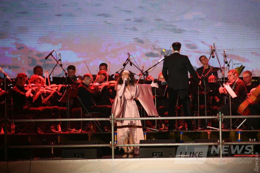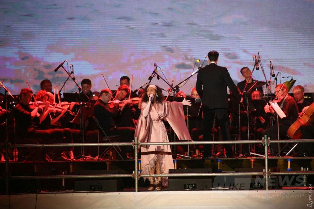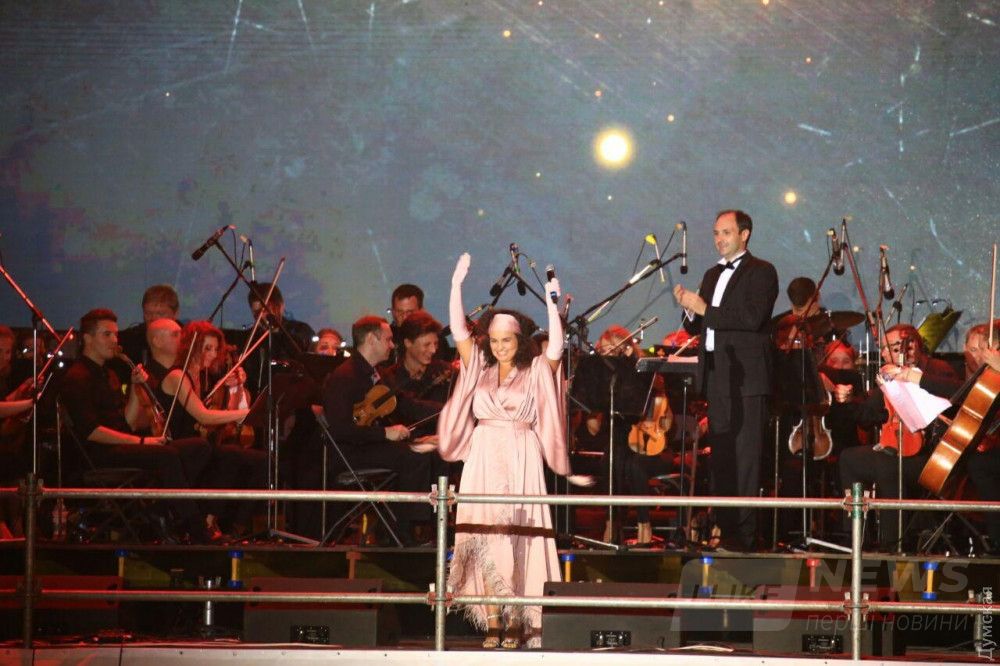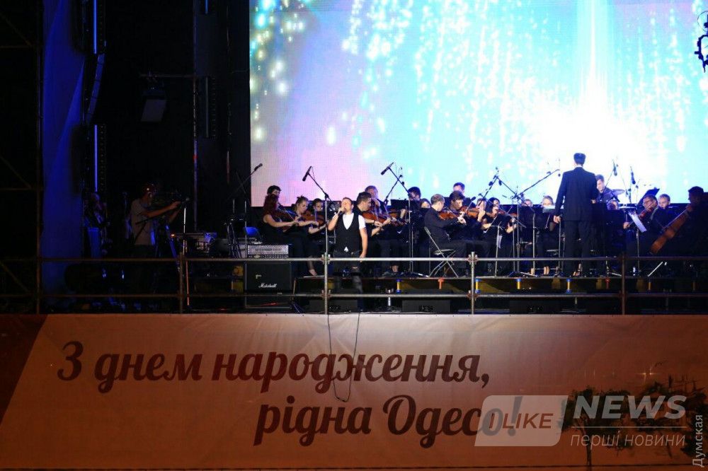 На Потемкинской лестнице продолжается праздничный концерт, посвященный Дню Города. На сцене выступают одесские и всеукраинские музыкальные коллективы, передает корреспондент «Думской».