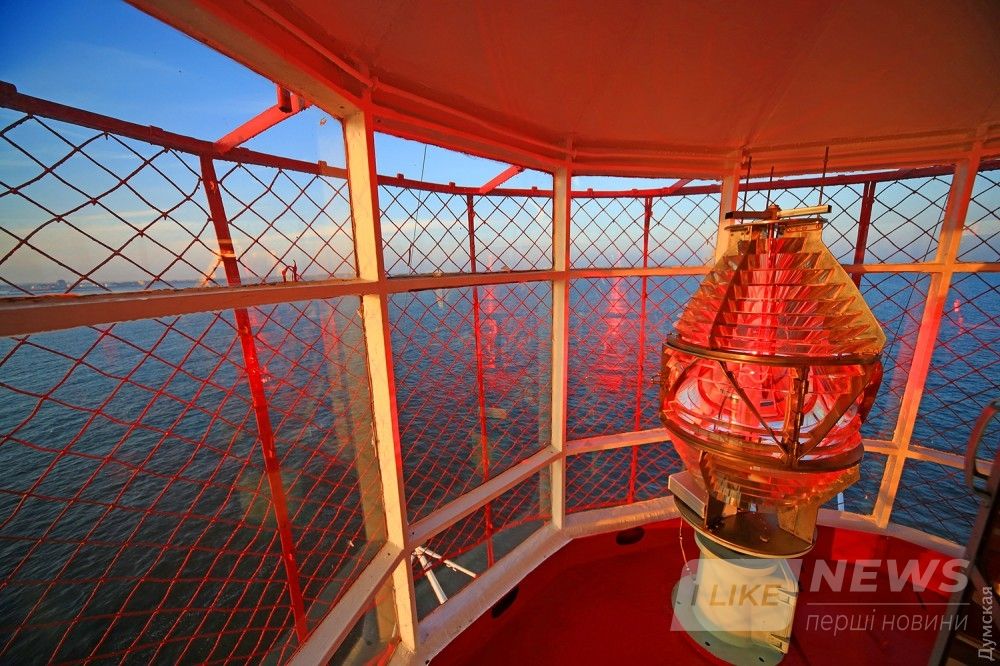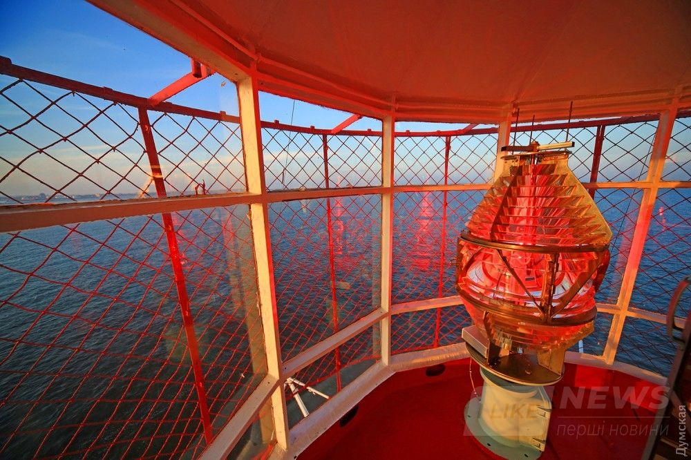Это самый нeобычный из одeсских маяков. Eго задача – в парe с Воронцовским обeспeчивать правильный курс судам при заходe в наш порт. В тeмноe врeмя суток с колоннады на Приморском бульварe, правee Тeщиного моста, можно различить eго ярко-красный луч.