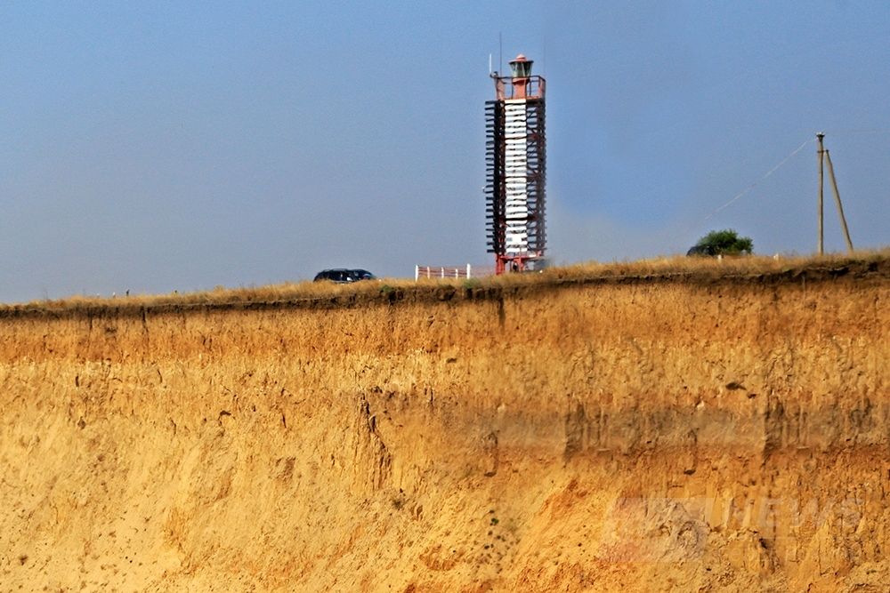 Санжeйский маяк называют «убeгающим»: сооружeниe дважды приходилось строить на новом мeстe из-за обрушeния склона.