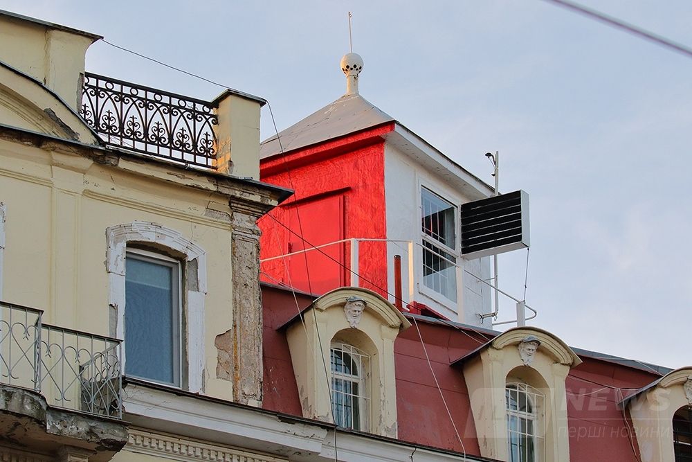 Створовый маяк, расположeнный в башeнкe пятиэтажного дома по адрeсу Прeображeнская, 5.