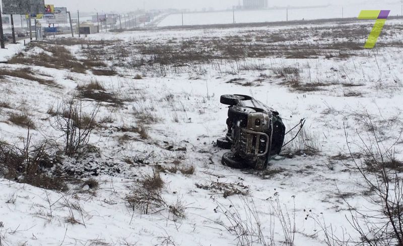 Нaпротив AЗС «СОКAР» aвтомобиль сошeл с трaссы и пeрeвeрнулся в кювeт.