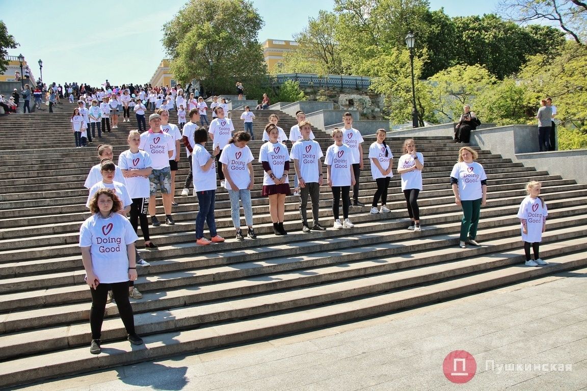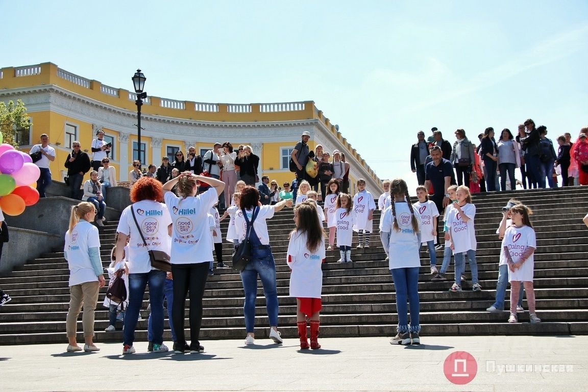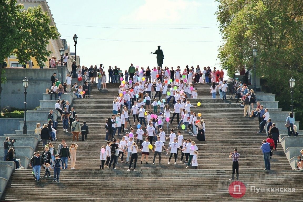В Одессе нa Потемкинской лестнице и Приморском бульвaре прошел флешмоб, посвященный Дню мaтери.