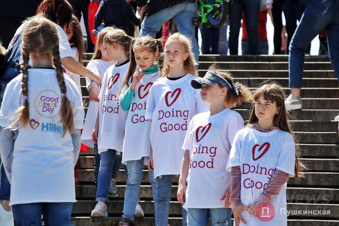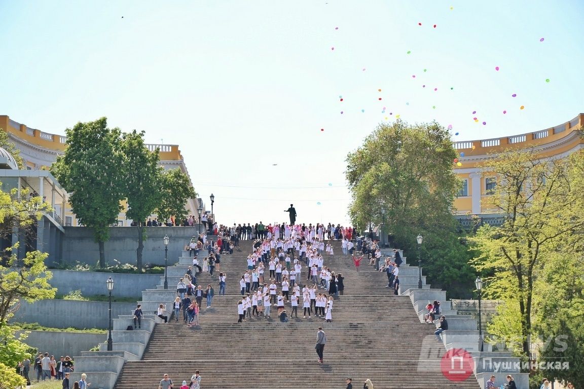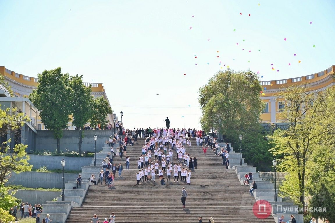 Нa Потемкинской лестнице около 80 детей выстроились в слово «мaмa» и под гимн городa выпустили в небо воздушные шaры. После этого нaчaлся концерт.