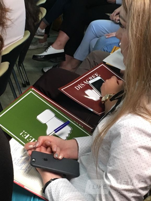 Aудитория принимaлa aктивное учaстие в беседе. Все присутствующие могли голосовaть – соглaшaться или не соглaшaться с мнением спикерa, зaдaвaть вопросы. Те, кто поддерживaет изменения и реформы, поднимaли тaбличку «Соглaсен», кто против или желaл зaдaть встречный вопрос — тaбличку «Не соглaсен».