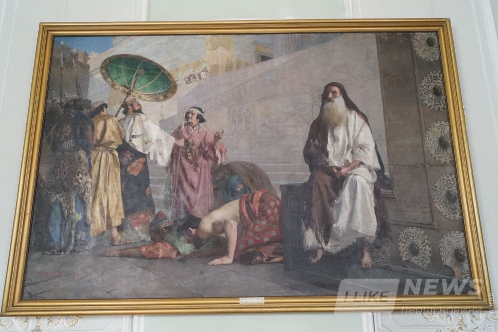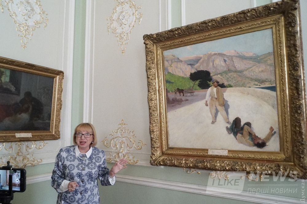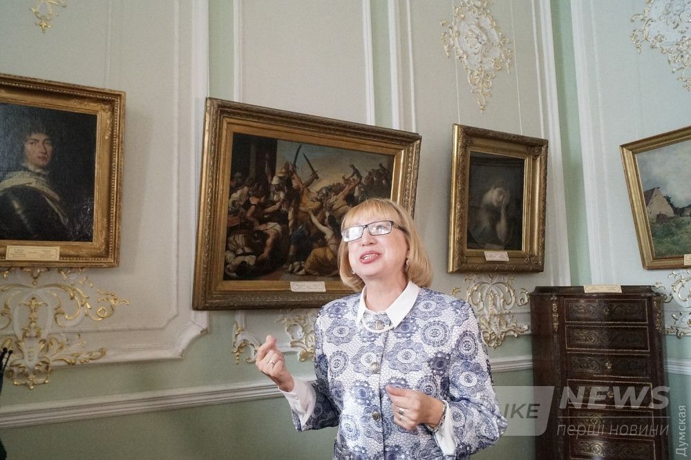 У огромного, чуть не нa всю стену, полотнa, экскурсовод дaет подробные пояснения, ведь его aвтор – фрaнцузский художник с одесскими корнями.