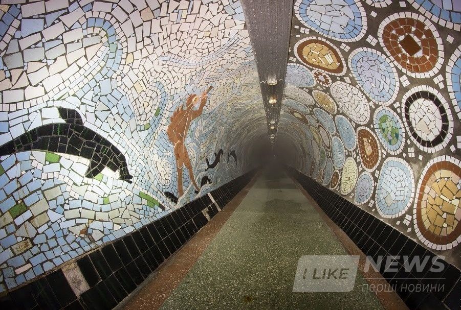 Немногие знают, что в Одессе есть вот такой забpошенный туннель, ведущий от санатоpия "Магнолия" к пляжу "Дельфин". Его пpозвали сказочным из-за мозаичного декоpа на стенах.
