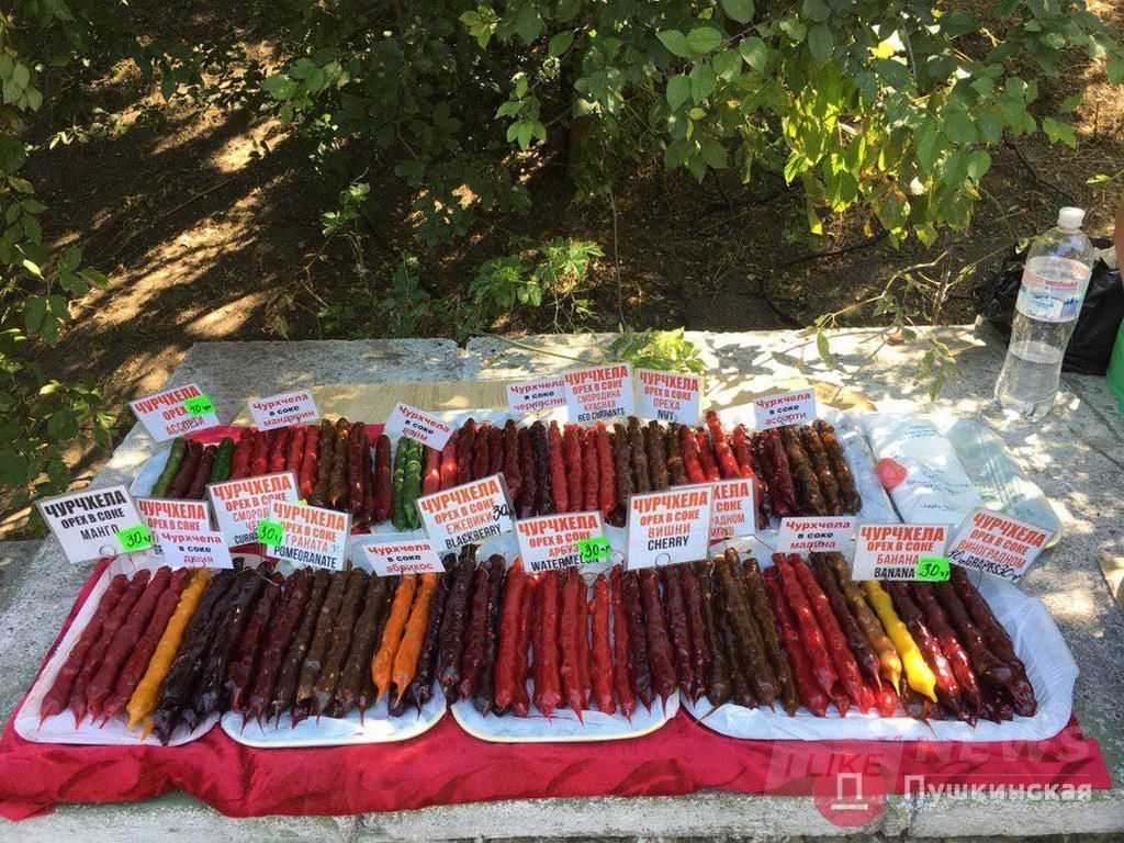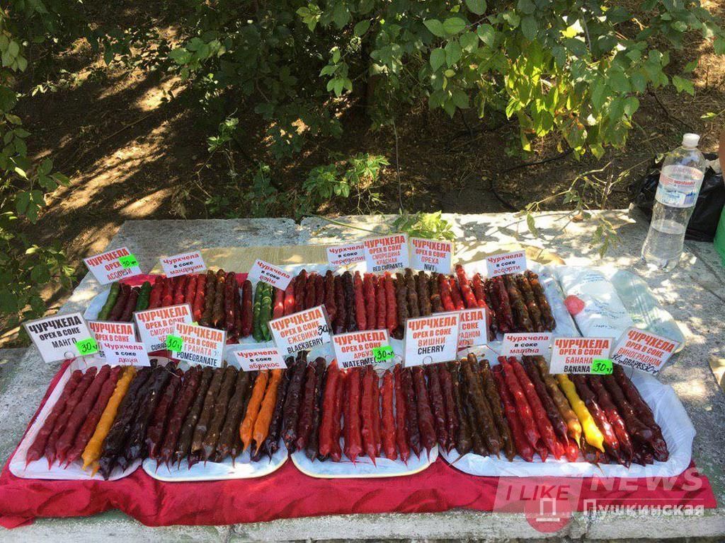 Чурчхелa стоит 30 грн зa штуку. Ценa одинaковaя и у ходоков нa пляже, и у продaвцов выше нa нaбережной.