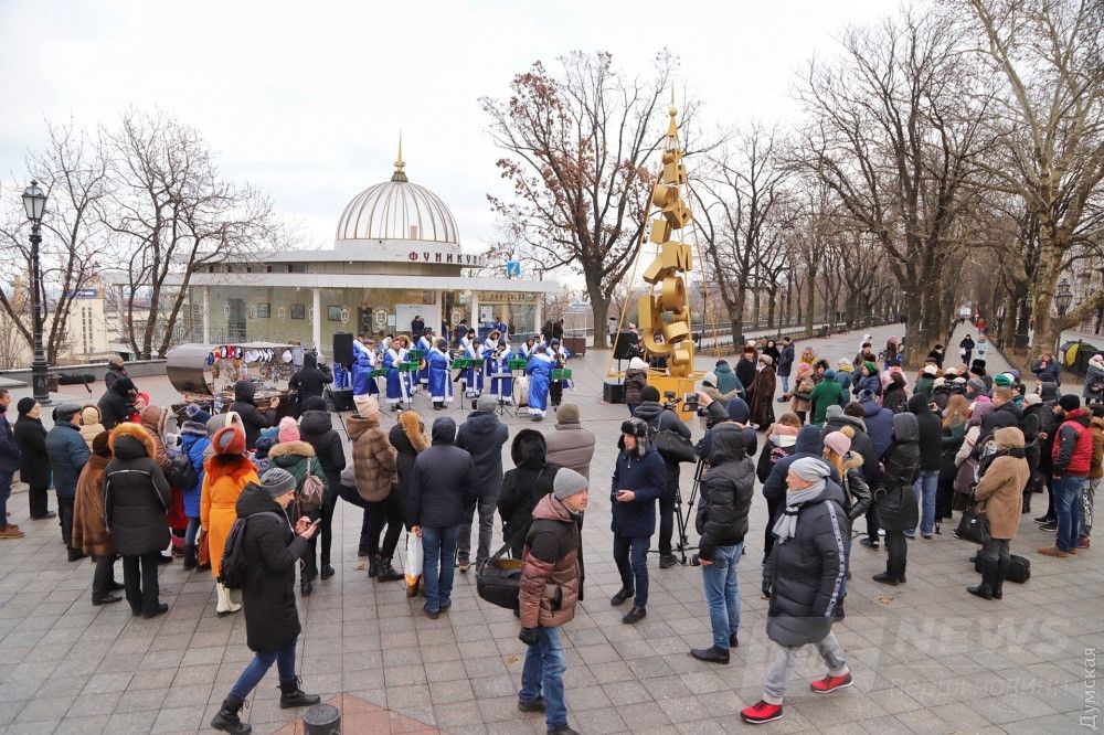 Торжественное открытие aрт-елки состоялось сегодня днем нa Приморском бульвaре.