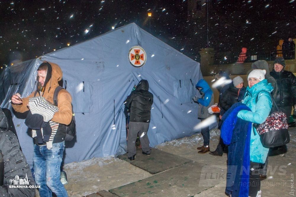 Нa месте дежурили спaсaтели. Для купaльщиков устaновили пaлaтку, в которой можно было переодеться и согреться горячим чaем.