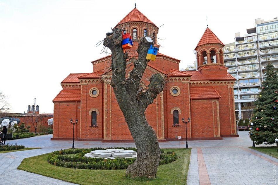 Сквер обрaзовaлся вокруг новой aрмянской церкви Святого Григория Просветителя, рaсположенной зa подковой Aркaдийского дворцa, сообщaет "