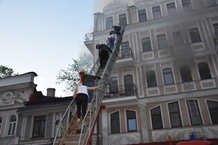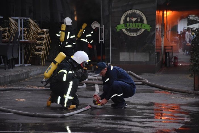 По прибуттю на місце виклику пожежно-рятувальних підрозділів встановлено сильне задимлення з підвального приміщення та загоряння відкритим полум'ям на 1-му поверсі ресторану “Щастя”, який впритул розташований до будівлі ресторану “Salieri”. Будівля п'ятиповерхова, з другого по п'ятий поверхи розташований готельний комплекс - “Palais Royal”.