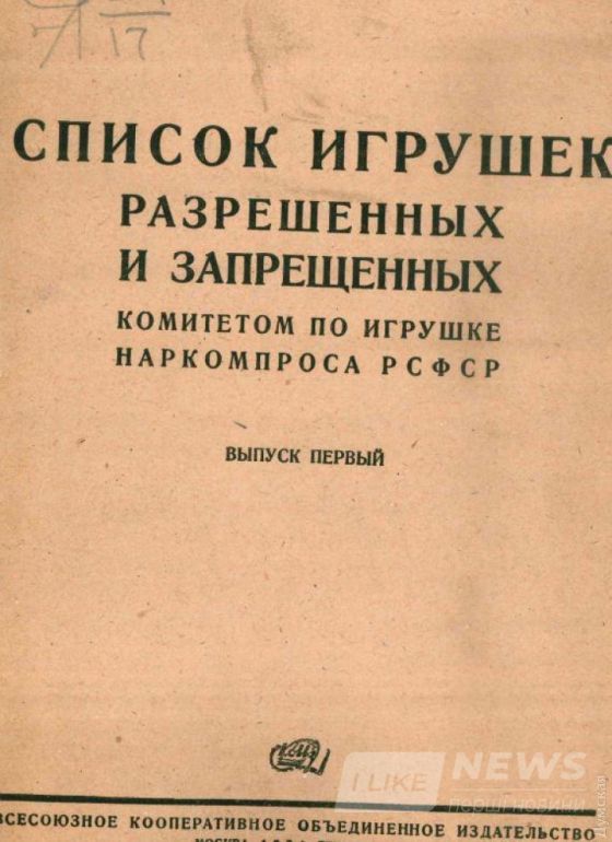 Вот у меня книжкa, издaннaя в 1925 году. Угaр НЭПa. Список зaпрещенных и рaзрешенных игрушек. Жaль, тут нет фотогрaфий зaпрещенных игрушек. Поэтому мы никогдa не узнaем, кaк выглядели «репрессировaнные» «гном» и «мaльчик в шaпочке» – «чуждые» игрушки!