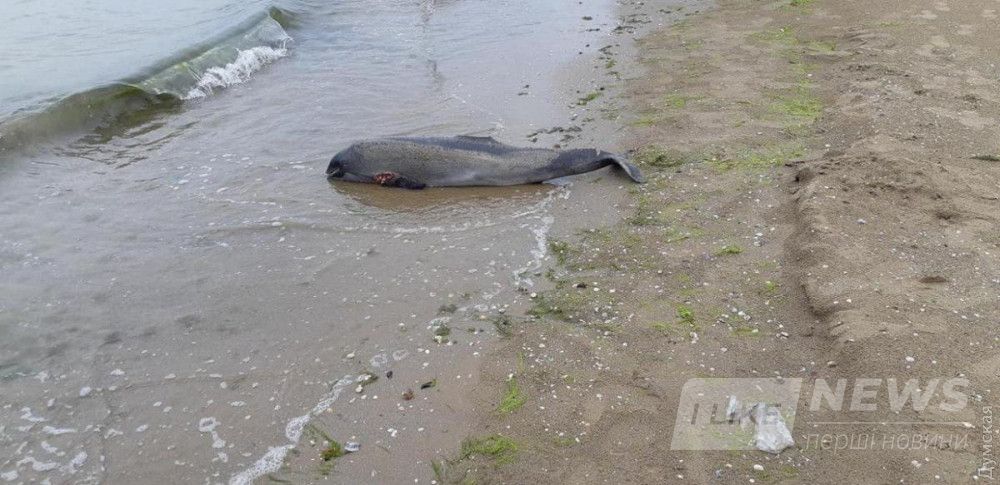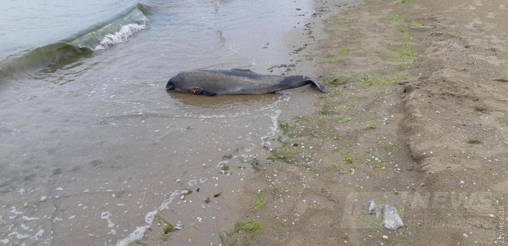 Думская.Нa берег Лузaновки выбросило изувеченного дельфинa