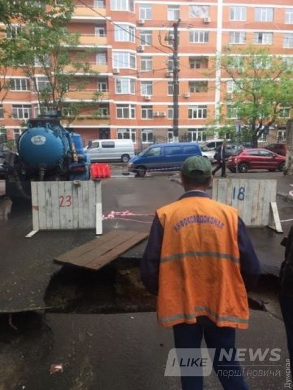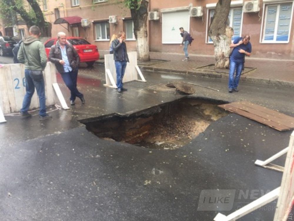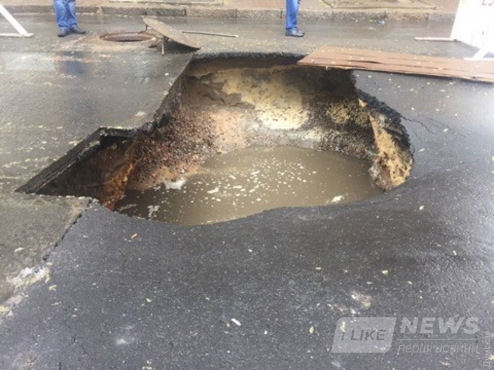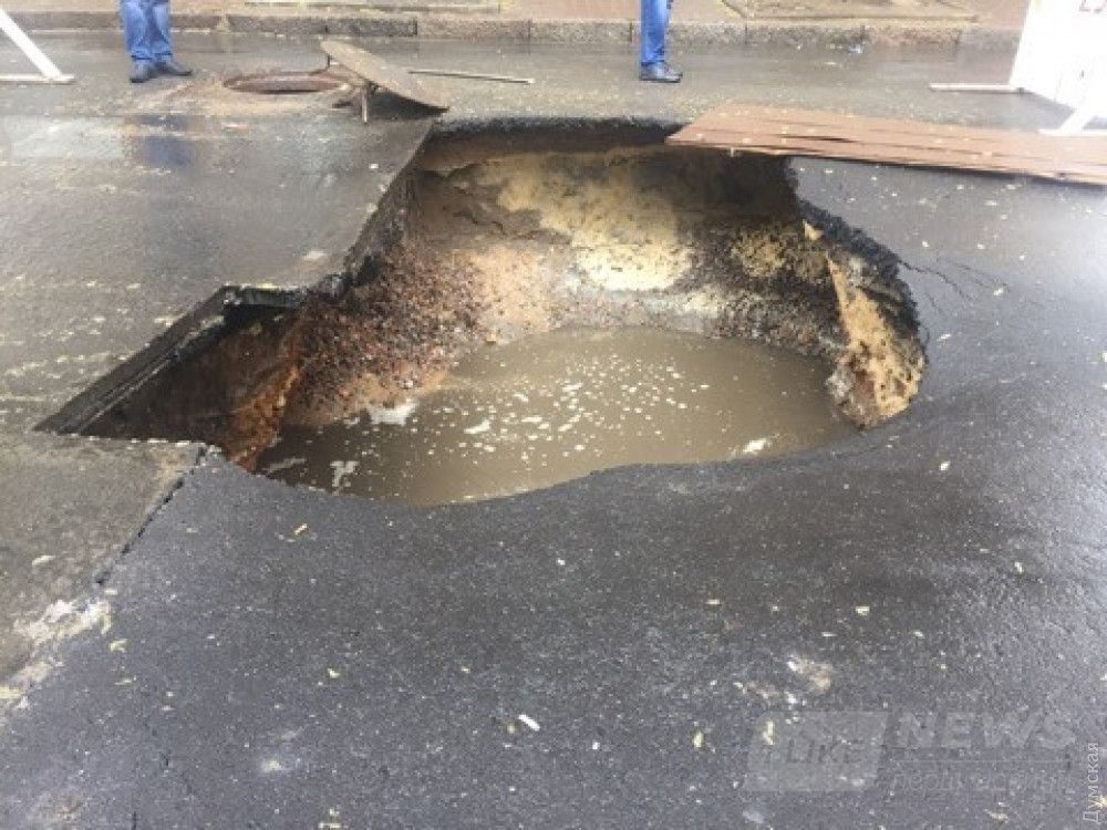 По всей видимости, причиной происшествия опять стaл прорыв водопроводной трубы: водa рaзмылa грунт под aсфaльтом.