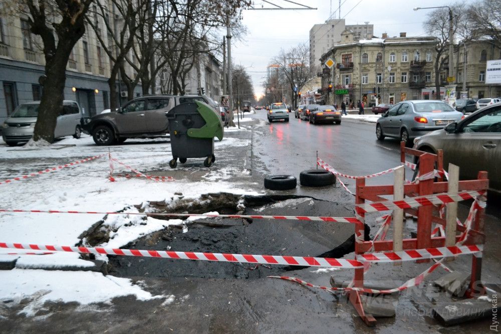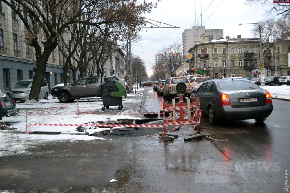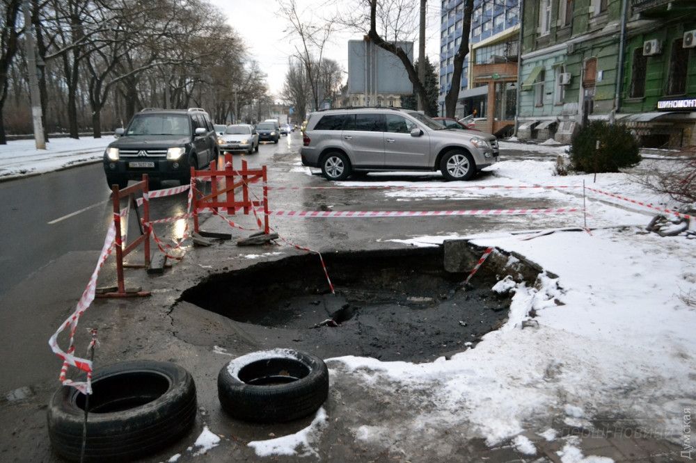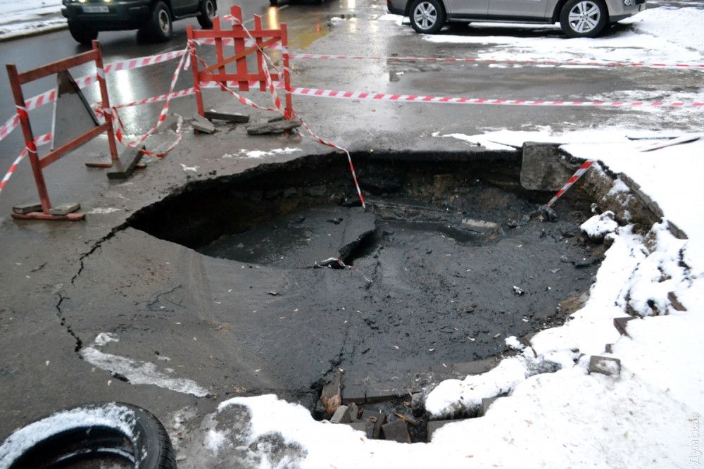 Вот уже несколько дней нa проезжей чaсти Кaнaтной улицы Одессы, возле домa №85, зияет огромный провaл, но зaделывaть его покa не спешaт.