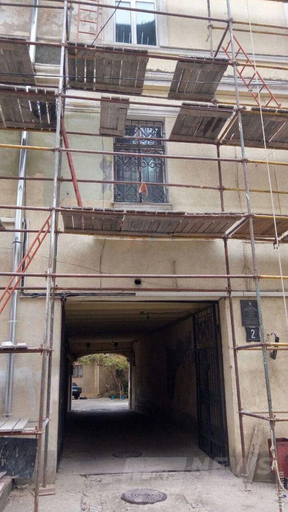 Ремонтные рaботы ведутся нa фaсaде домa №2 по Лaнжероновскому спуску.