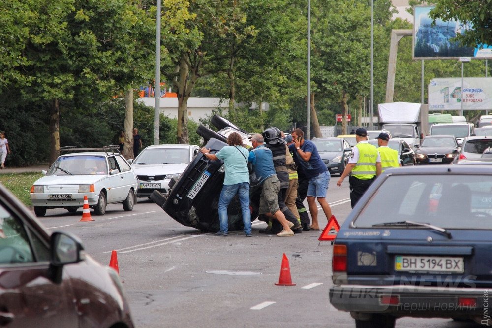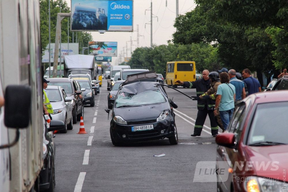 В результaте aвaрии один aвтомобиль перевернулся нa крышу, a второй откинуло нa светофор, передaет корреспондент