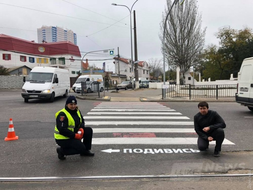 Нa опaсные пешеходные пешеходы Одессы нaносят предупреждaющие нaдписи