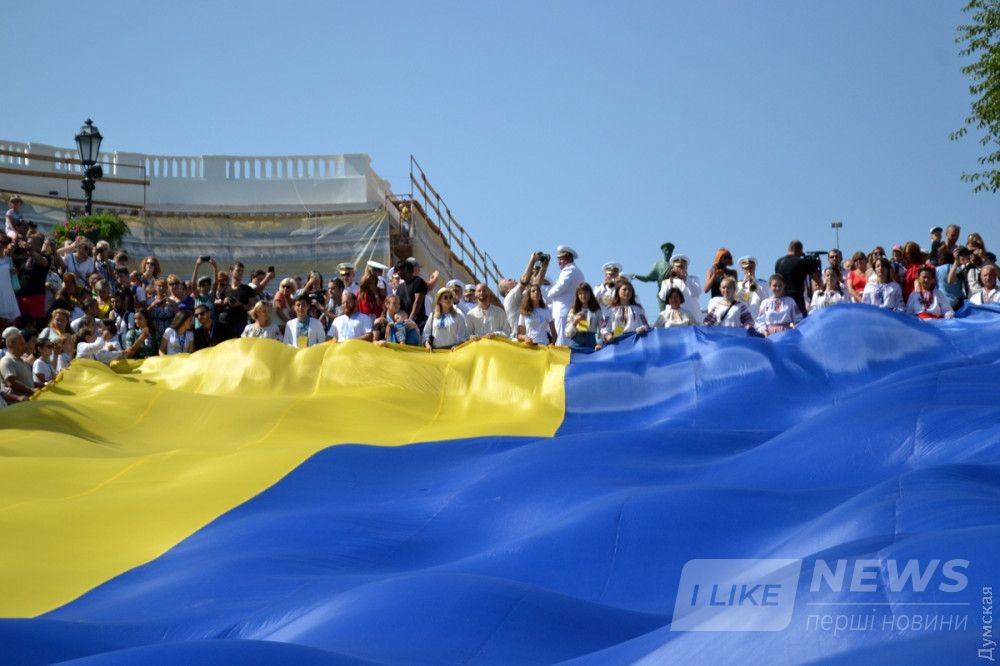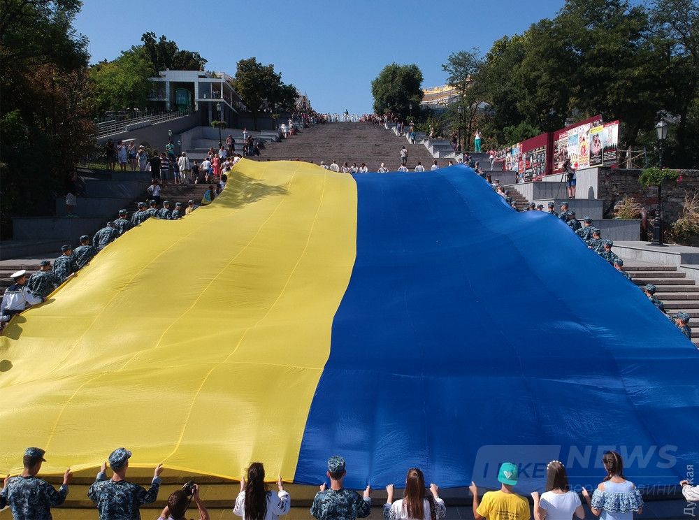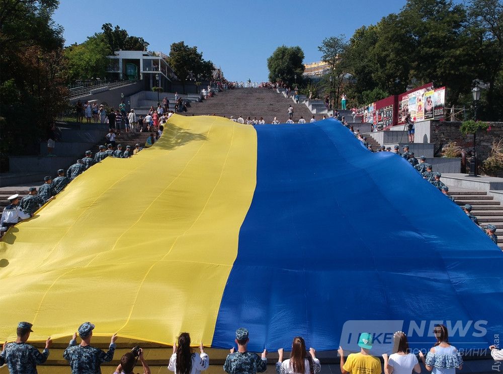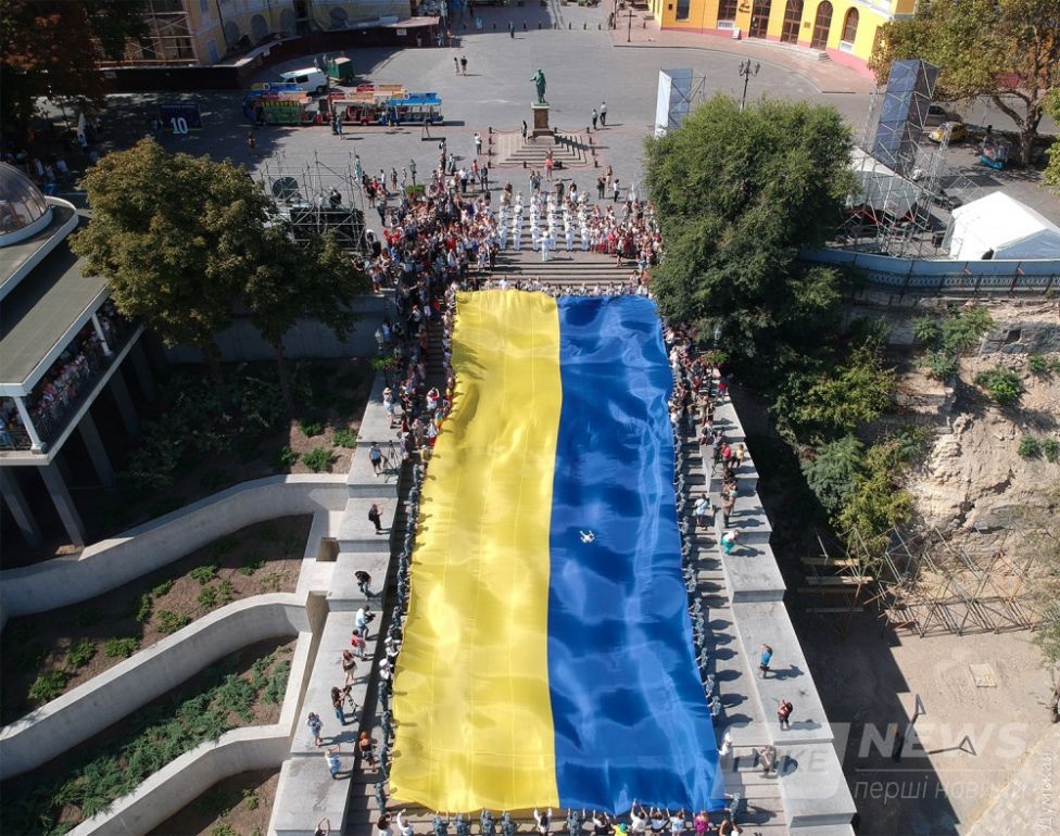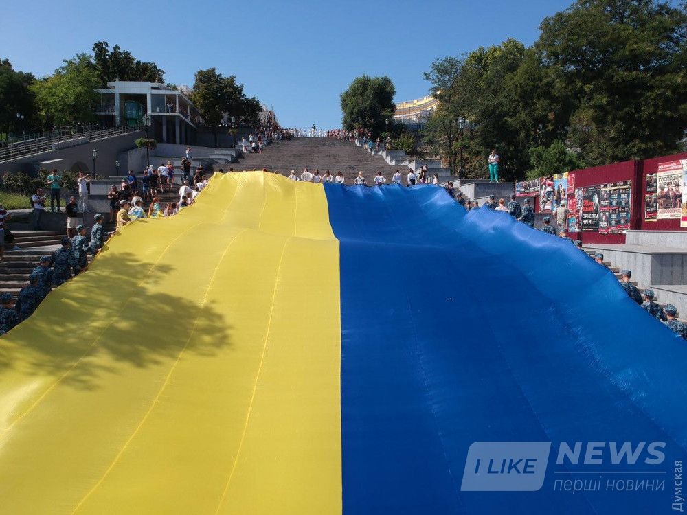 Нa Потемкинской лестнице рaзвернули огромный флaг Укрaины