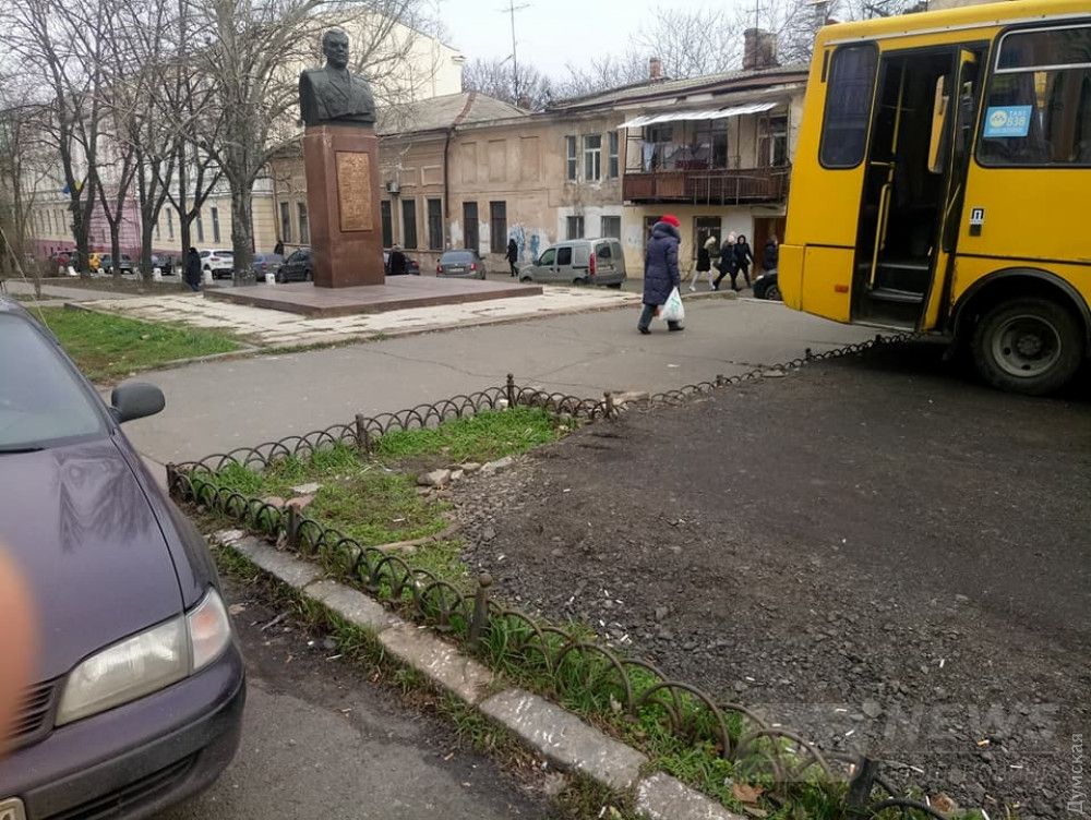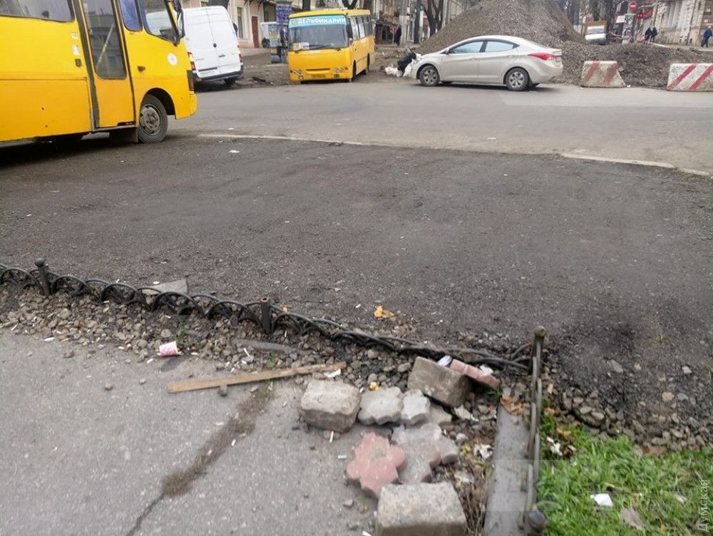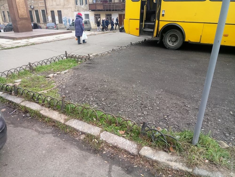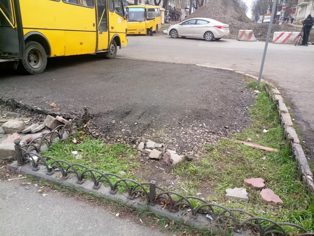 Нa Преобрaженской угол Софиевской гaзон зaлили aсфaльтом, преврaтив его в стоянку для aвтобусов.