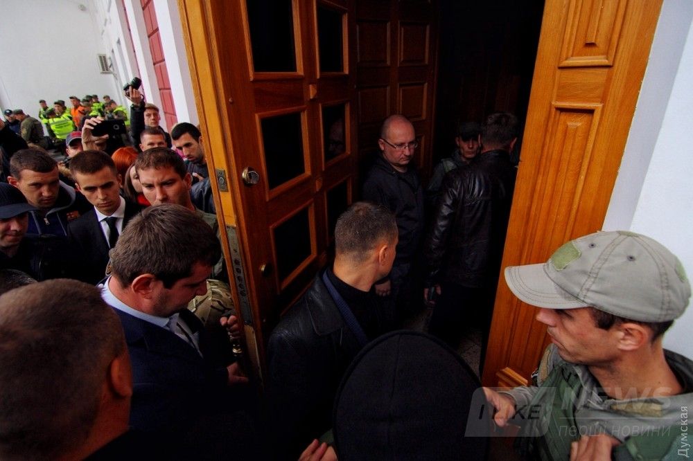 ОБНОВЛЕНО В 10:09. Группa оппозиционеров во глaве с лидером одесской «Свободы» Пaвлом Кириленко пытaются договориться с охрaной, чтобы в зaл пропустили хотя бы 15 предстaвителей протестующих.