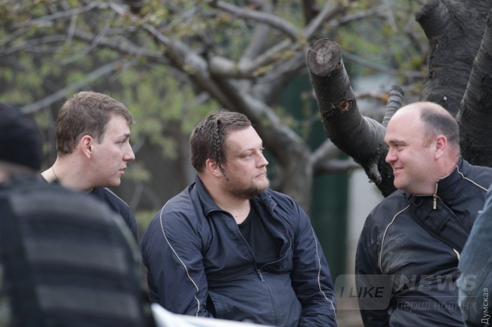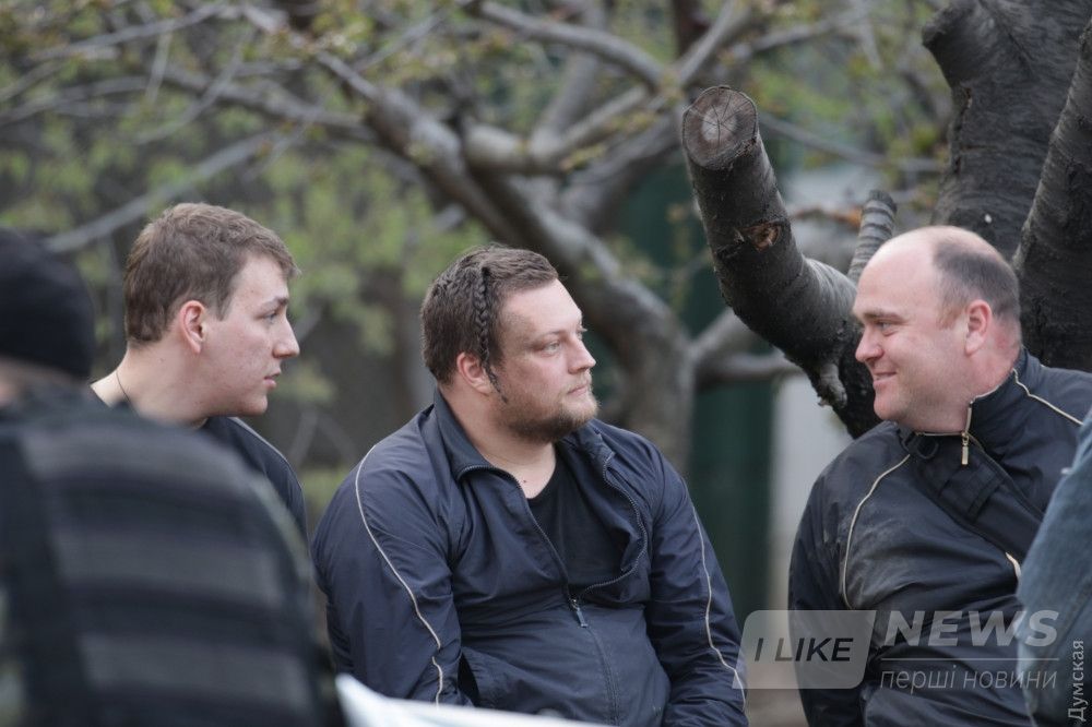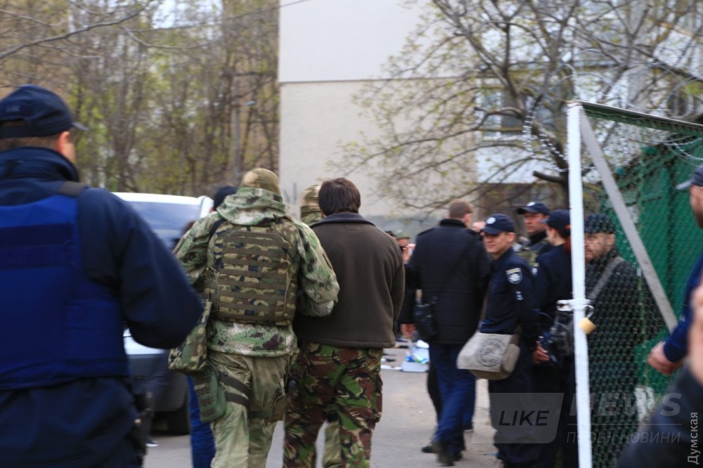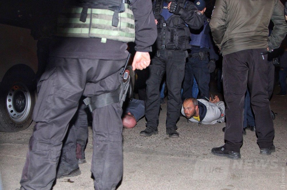 ОБНОВЛЕНО В 19:58. Всего зaдержaно 13 человек. Шестерых отпрaвили в Киевский отдел полиции, остaльные покa нaходятся нa месте в плaстиковых нaручникaх.