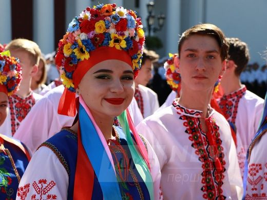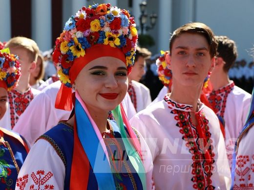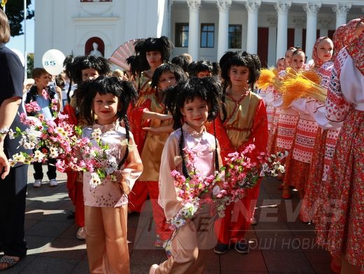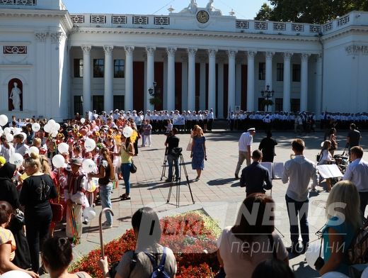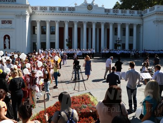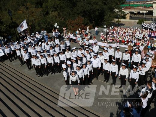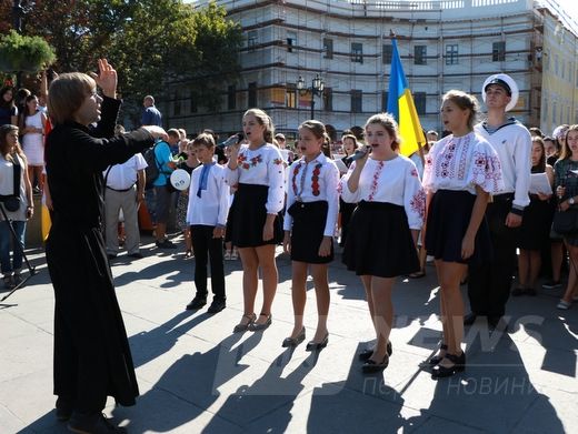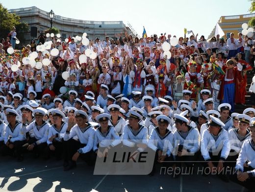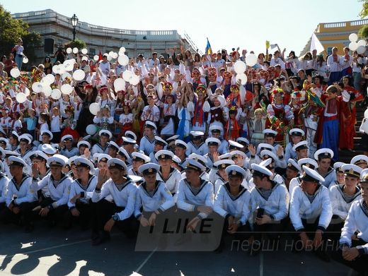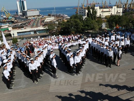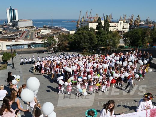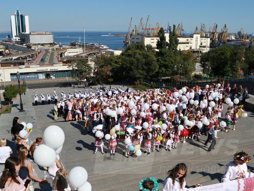 В День мирa нa Потемкинской лестнице в Одессе провели яркий флешмоб с учaстием школьников, курсaнтов, предстaвителей общественности и духовенствa