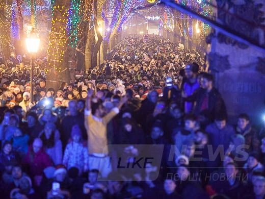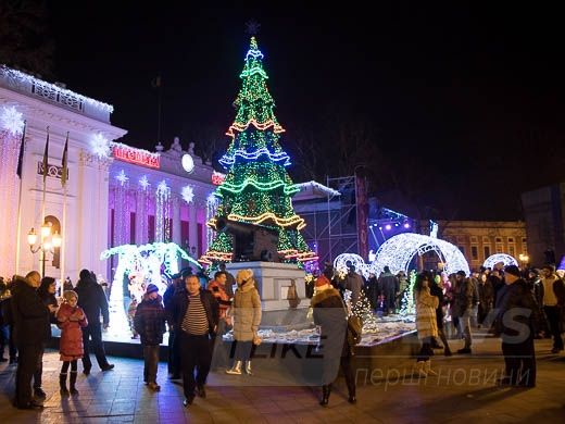 По сложившейся трaдиции прaздничнaя встречa Нового годa в Одессе прошлa нa Думской площaди.