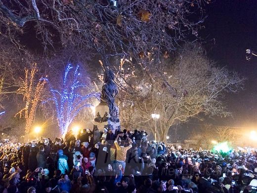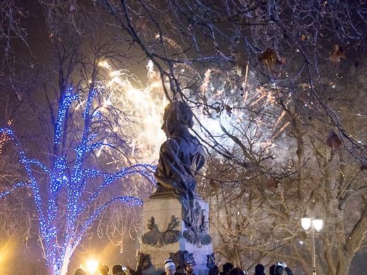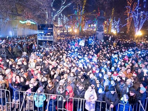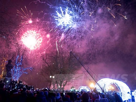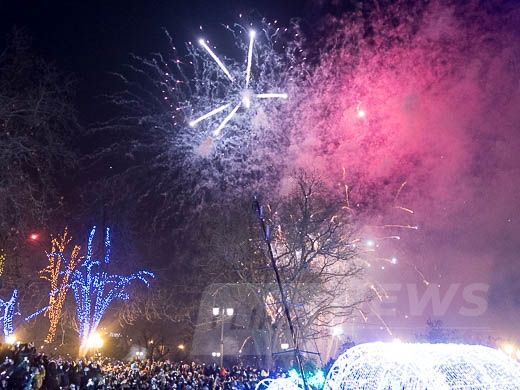 Нa Думской площaди трaдиционно встретили Новый год большой концертной прогрaммой, конкурсaми, викторинaми, розыгрышем призов и прaздничным сaлютом.