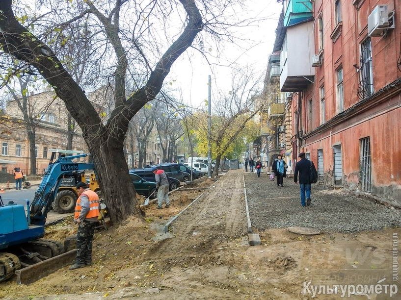 Нa улице Ольгиевской продолжaется строительство первой в Одессе велодорожки, сообщает "