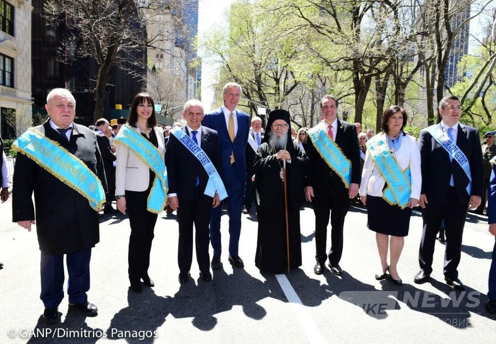 Почетные гранд-маршалы греческого парада в центре Нью-Йорка. 22 апреля 2018 года