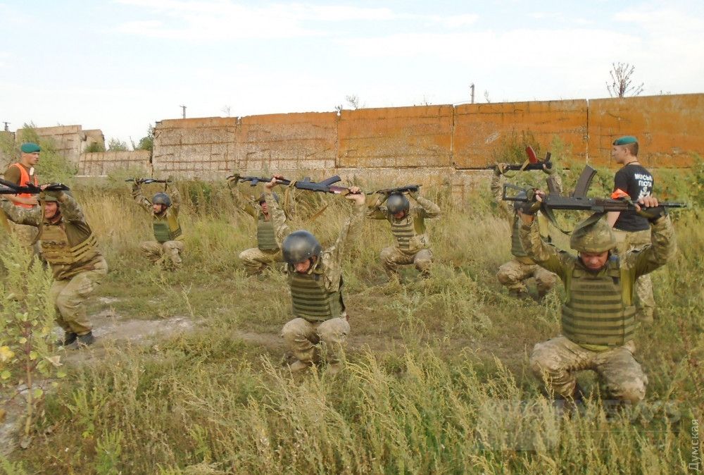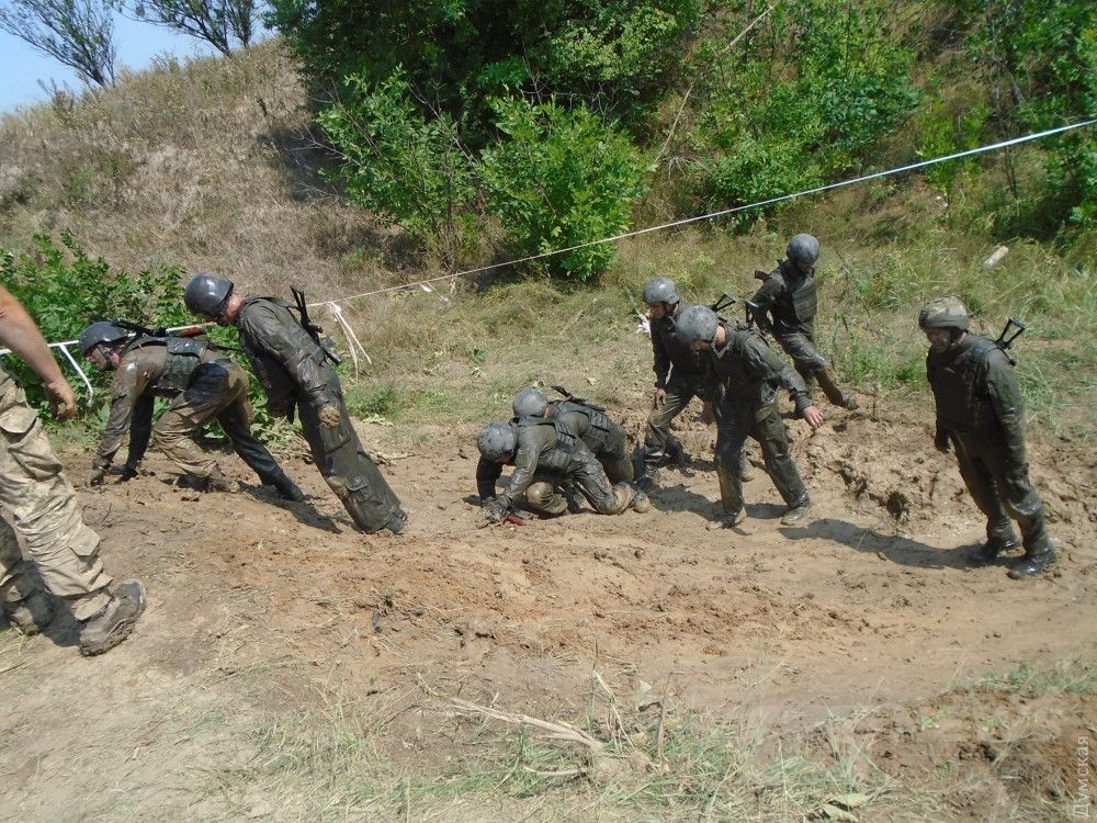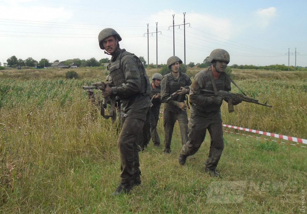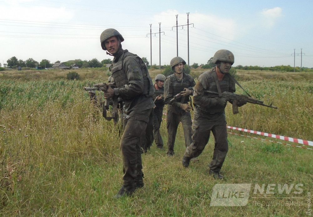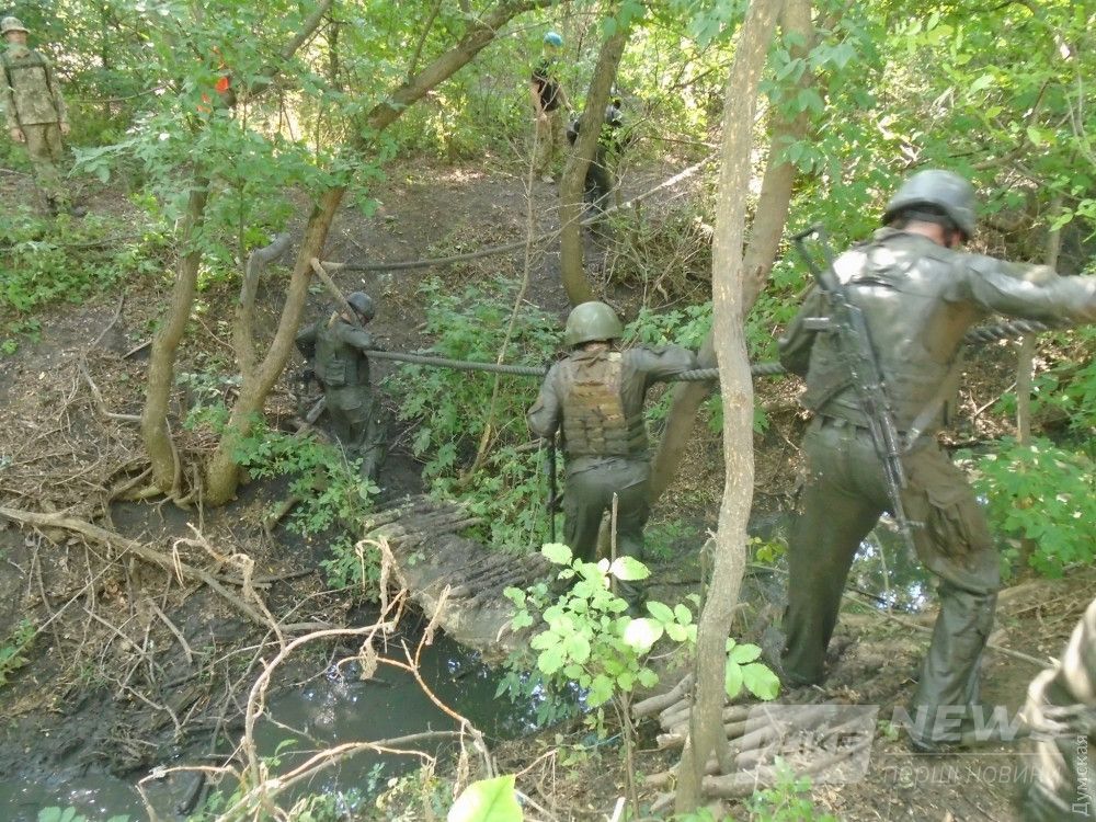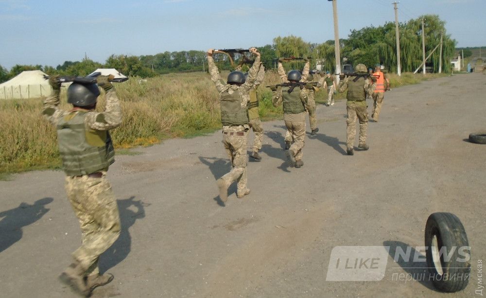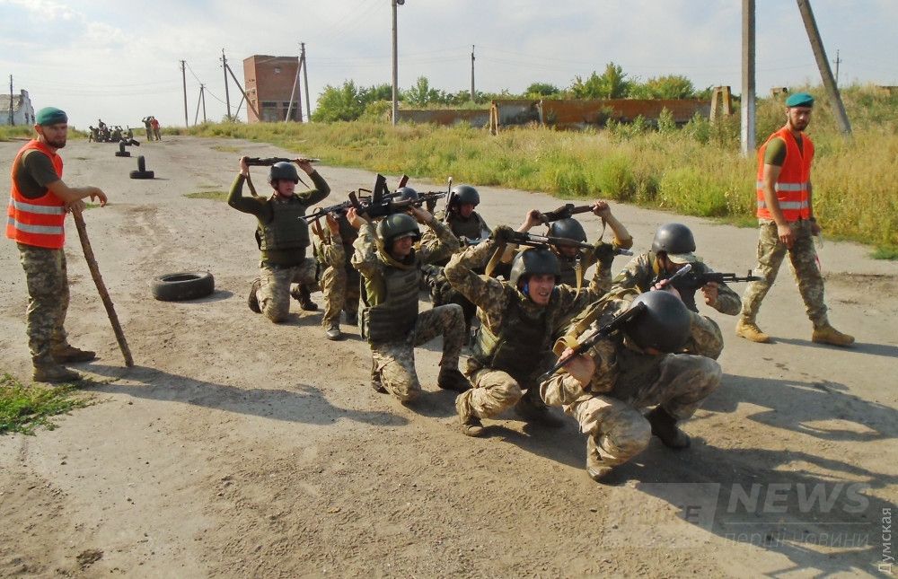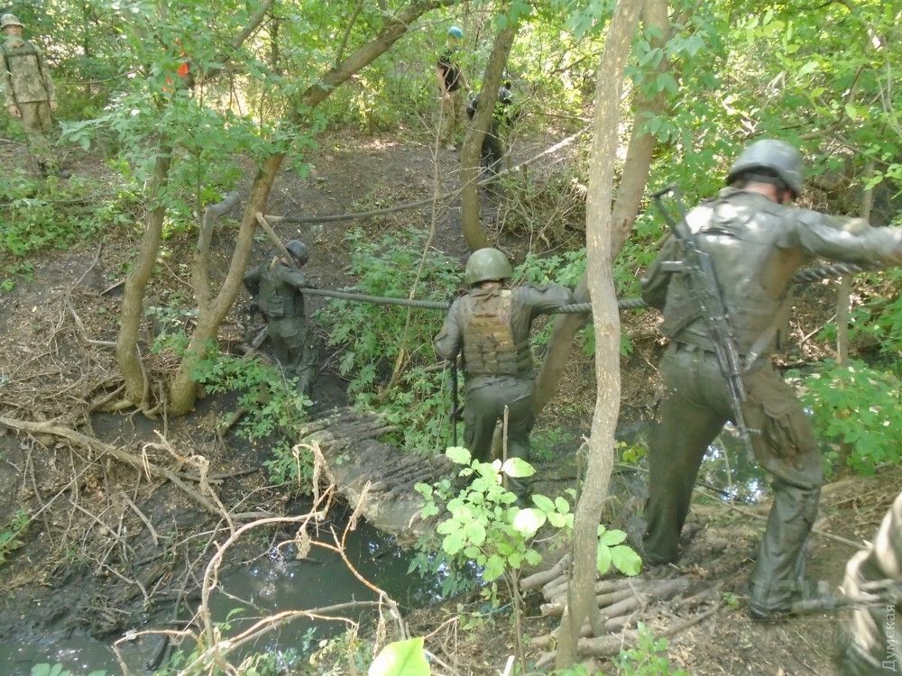 Бойцы одесского и болградского батальонов прошли пятикилометровую полосу препятствий, созданную на довольно сложной местности.