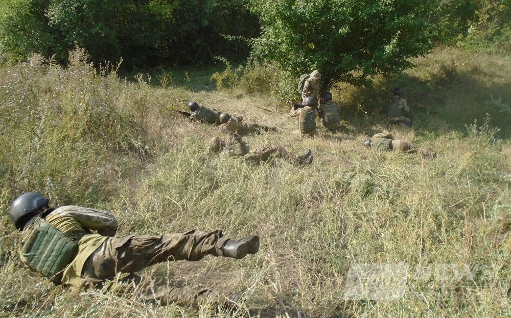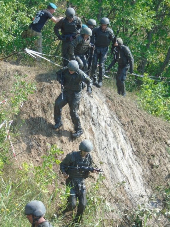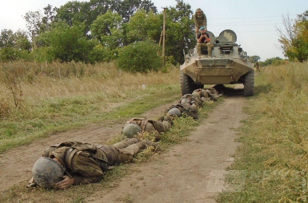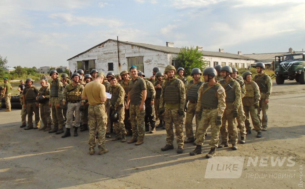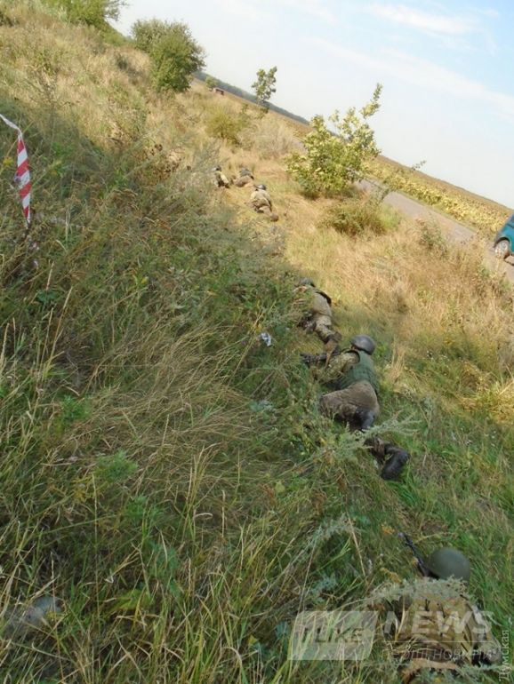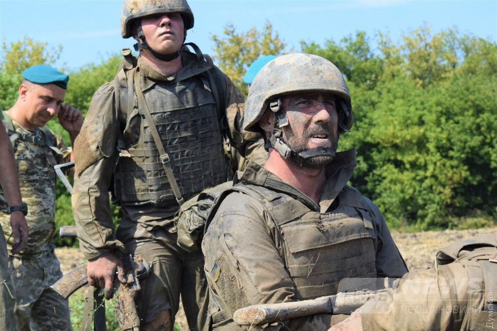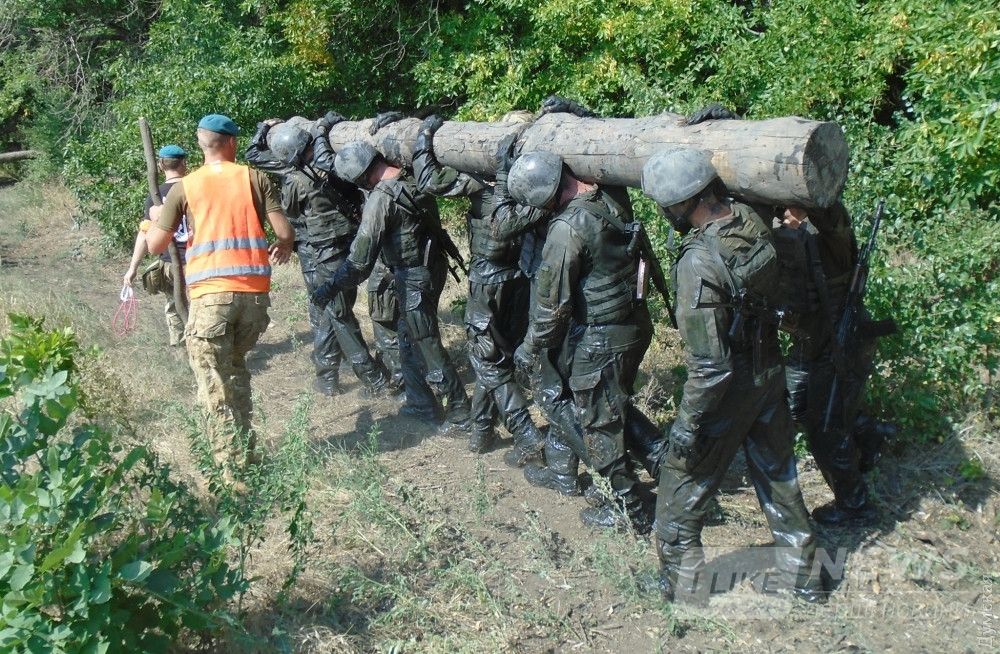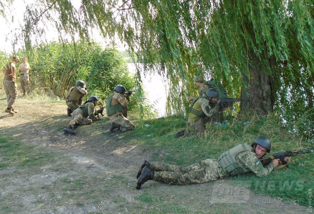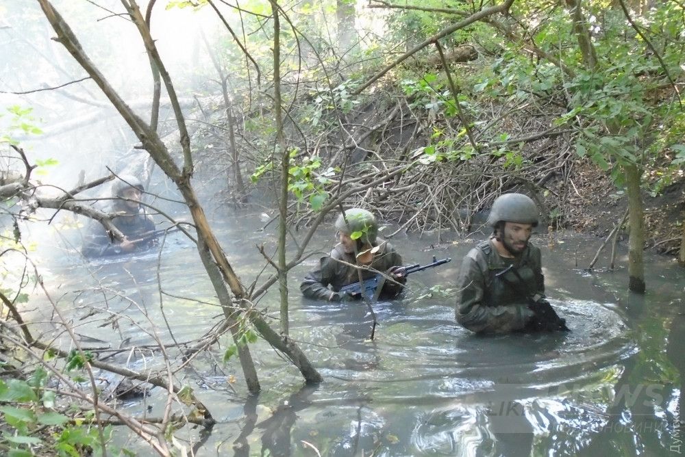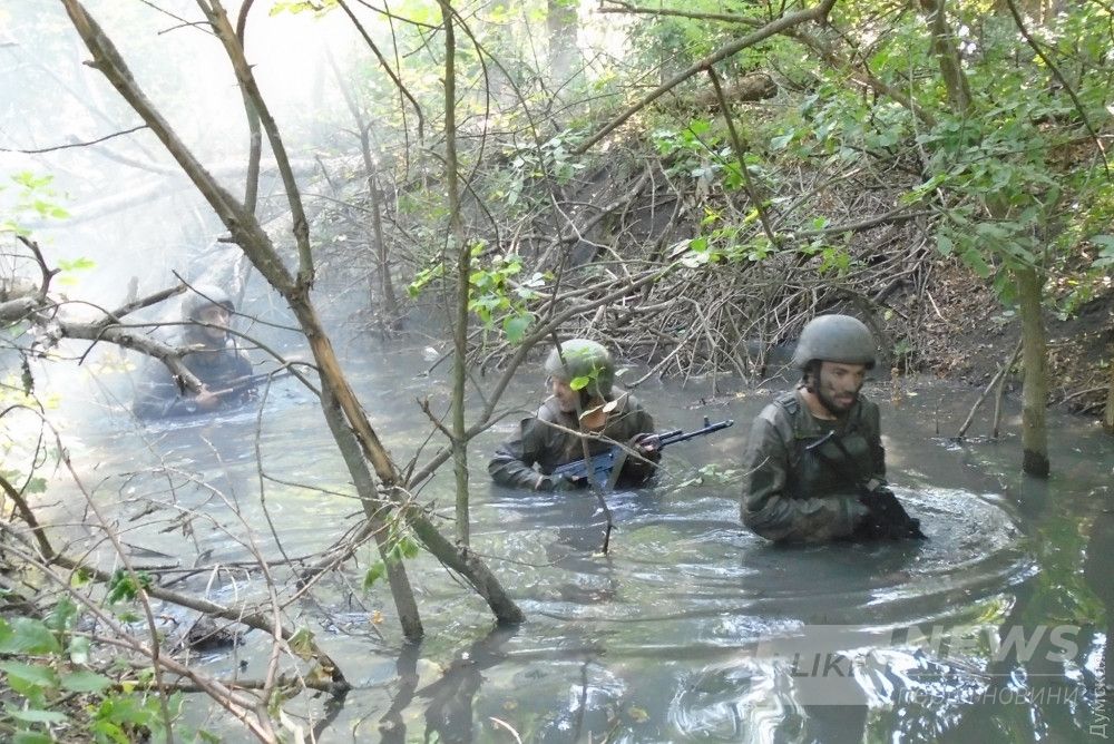 Бойцы одесского и болградского батальонов прошли пятикилометровую полосу препятствий, созданную на довольно сложной местности.