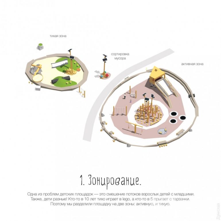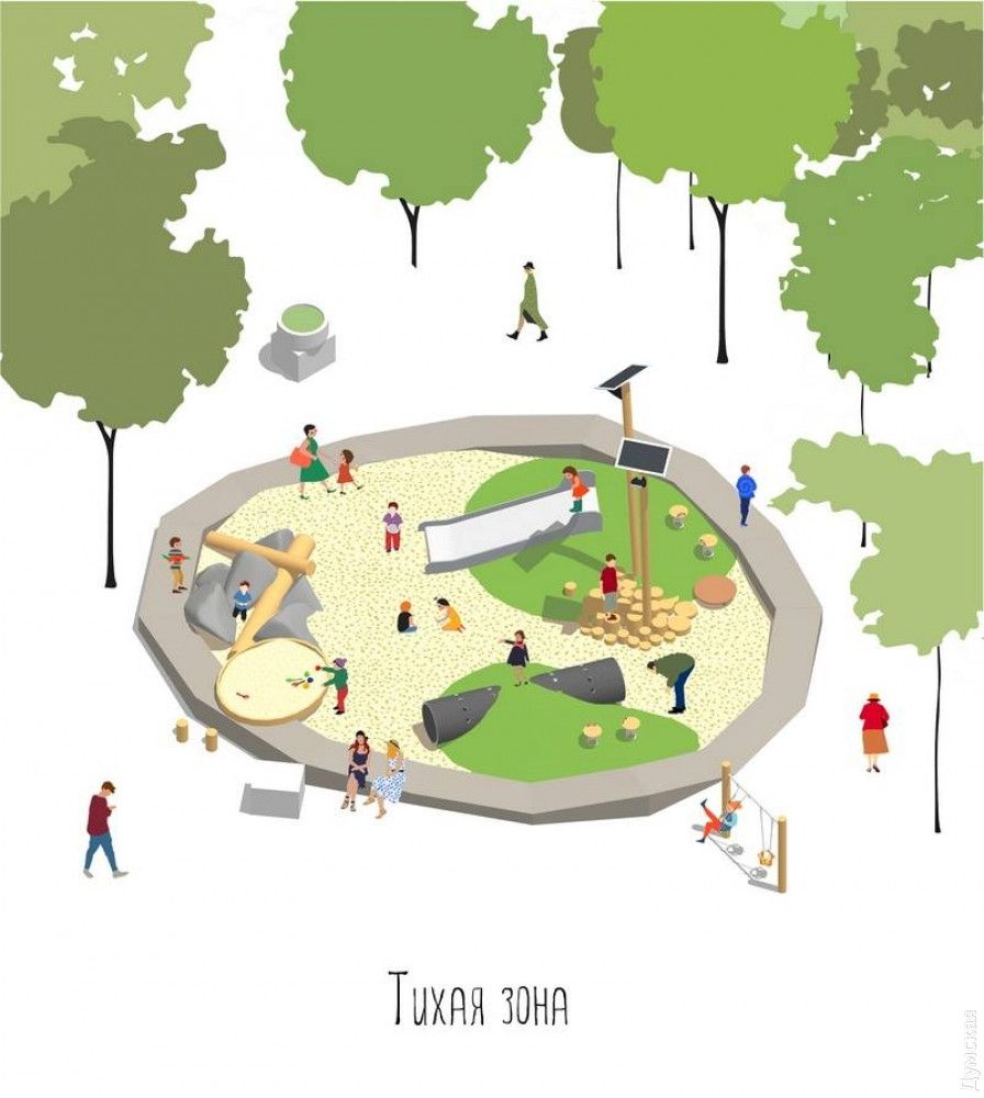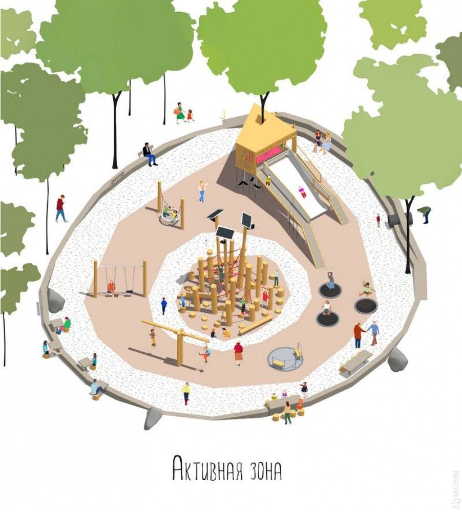 Площадка будeт разбита на двe зоны — «активную» и «тихую».