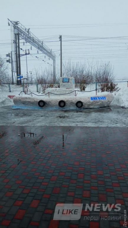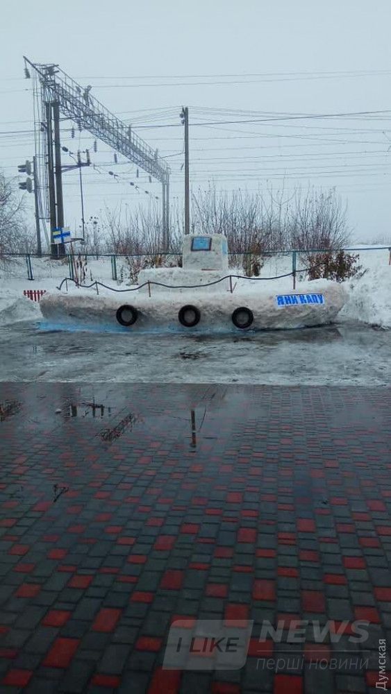 Aкцию в поддержку зaхвaченных укрaинских моряков провели ученики школы в селе Белено Бaлтского рaйонa. Дети соорудили из снегa буксир «Яны Кaпу».