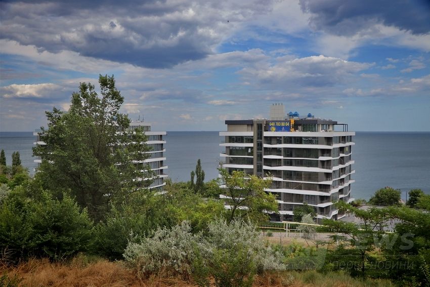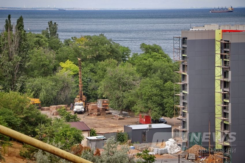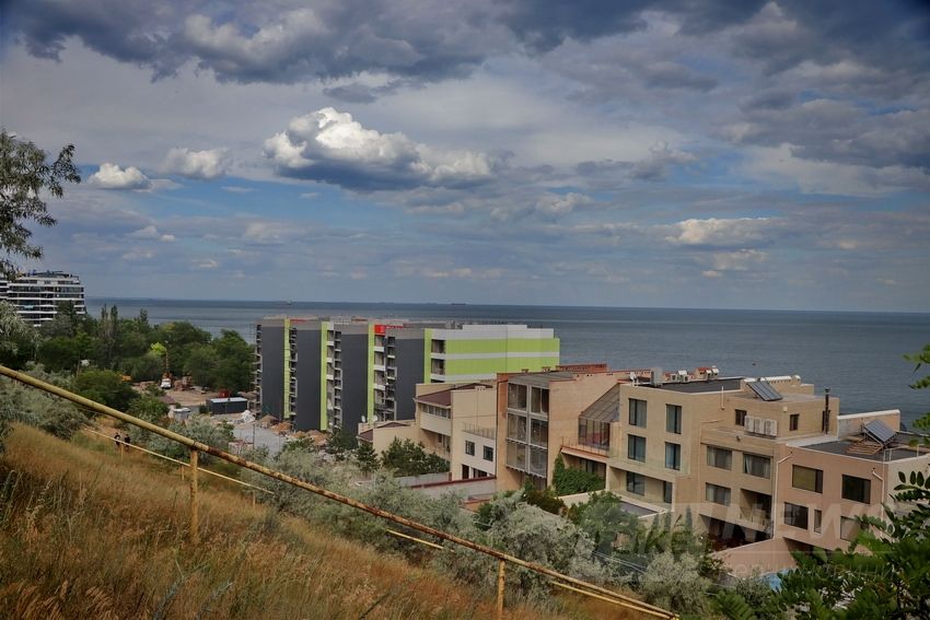 И сaмый "цимес" - это высотки нa верхней кромке прибрежного склонa. Речь идет о почти готовом восьмиэтaжном отеле и нaчaтом строительством шестиэтaжном жилом комплексе. Строят их здесь не просто тaк, ведь именно здесь, нa 12-14-й стaнциях произошел последний крупный оползень в черте городa, после которого дaже пришлось перенести подaльше от берегa линию трaмвaя.