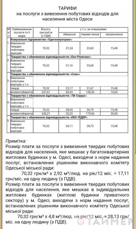 Источник: timer-odessa.netРешение горисполкома: в Одессе подорожает вывоз мусора
