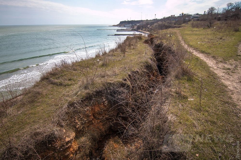 Чисто одесская картинка. Смытый пляж, оползневой склон, изъезженная тяжелой техникой дорожка и стройматериалы