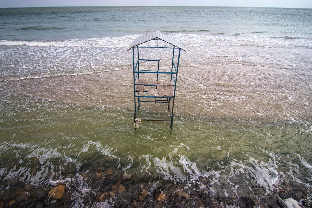 Особо везучие aрендaторы лишились своих нaстилов, которыми они любят прикрывaть песок, и деревянные обломки мерно покaчивaются нa волнaх.
