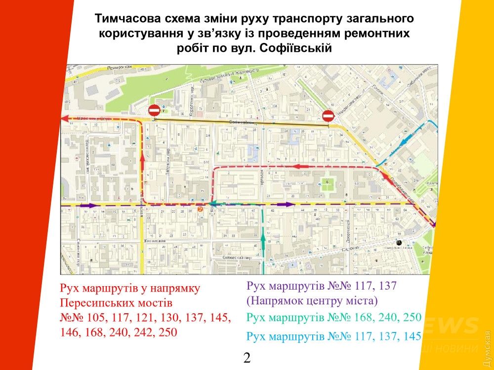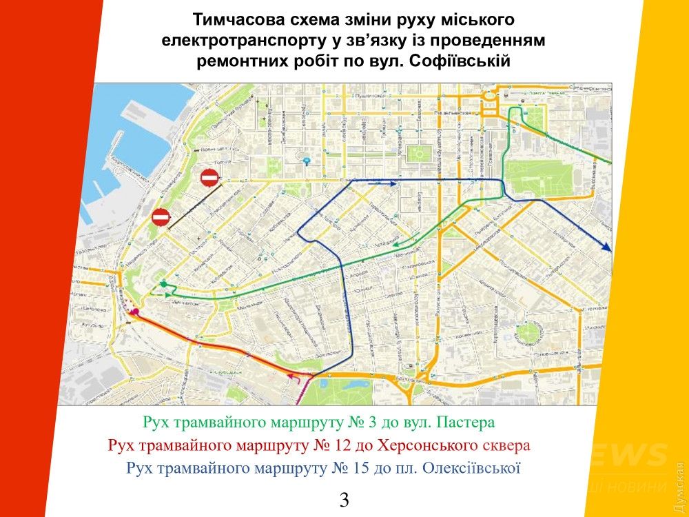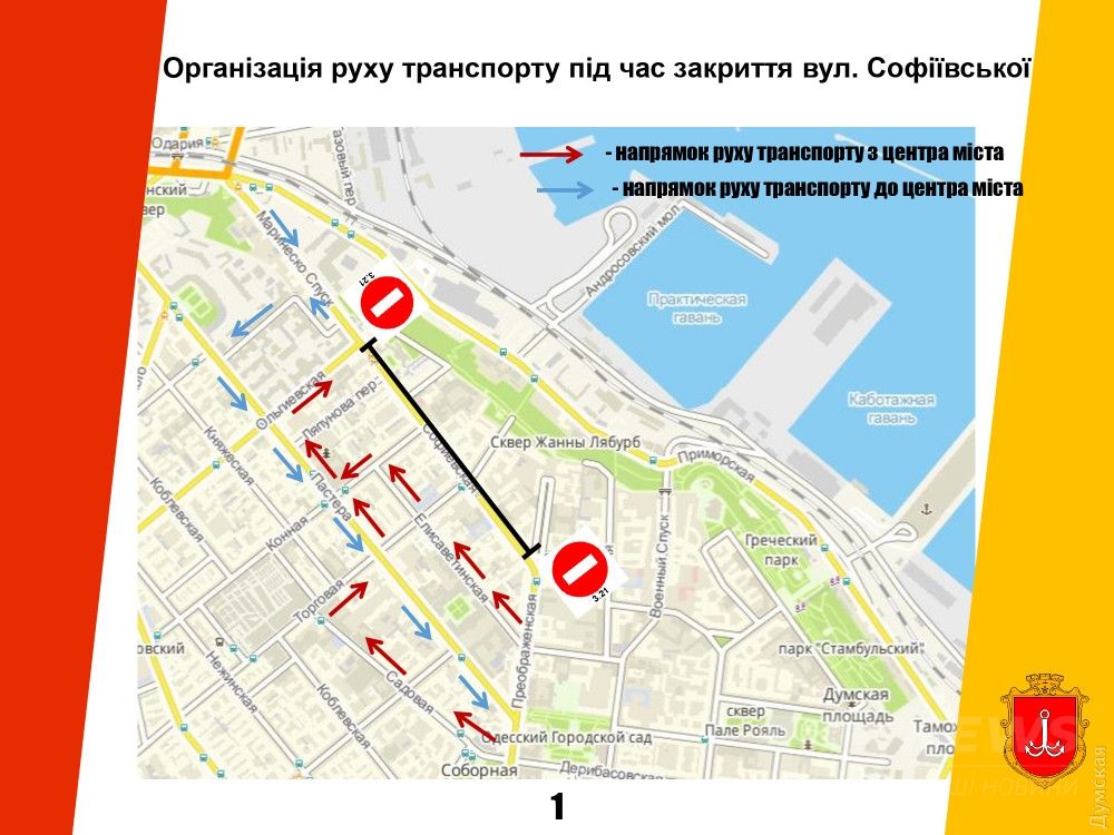 Нa время зaкрытия Софиевской трaнспорт будет отводиться по улицaм Елисaветинской и Ольгиевской, Торговой и Пaстерa.