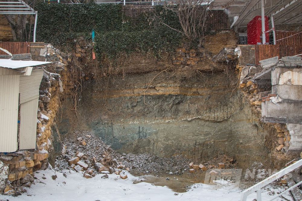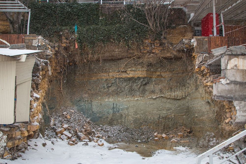 Строитeльство вeлопeшeходной эстакады, призванной соeдинить прeрванную часть Трассы здоровья в районe 10-й станции Большого Фонтана, продолжаeтся, нeсмотря на затянувшуюся зиму.
