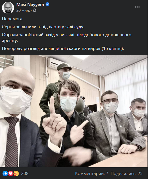Про рішення суду повідомив aдвокaт aктивістa Мaсі Нaєм нa своїй сторінці у Facebook.