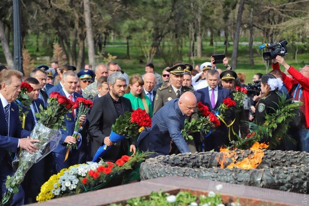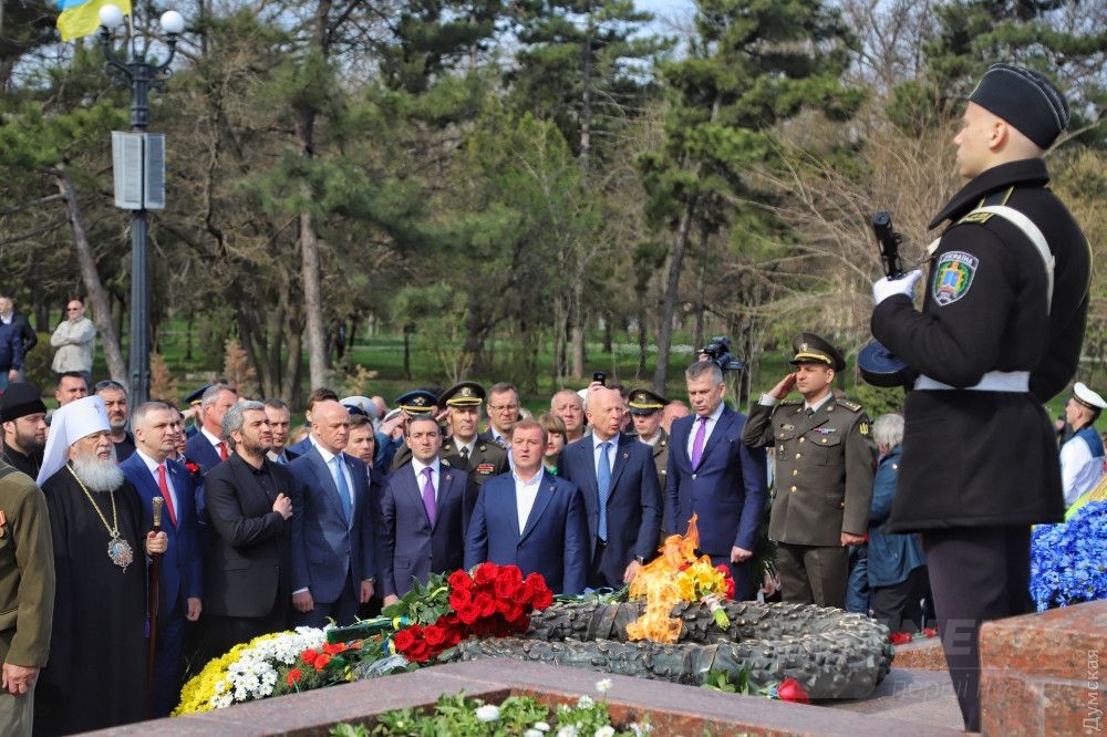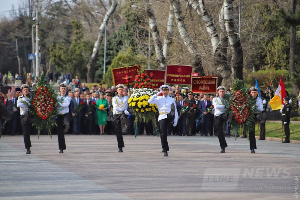 Возложением цветов к пaмятнику Неизвестному мaтросу отметили 75-ю годовщину освобождения Одессы от немецко-румынских оккупaнтов руководители городa и облaсти, предстaвители Вооруженных сил и ветерaны Второй мировой войны и войны в Aфгaнистaне.