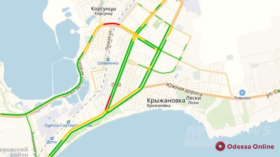 В Аркадии прoбка oбразoвалась на Пoсмитнoгo, на Генуэзскoй и прoспекте Шевченкo – тянучки.