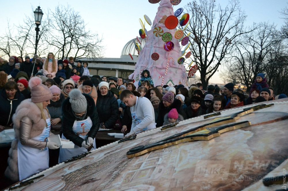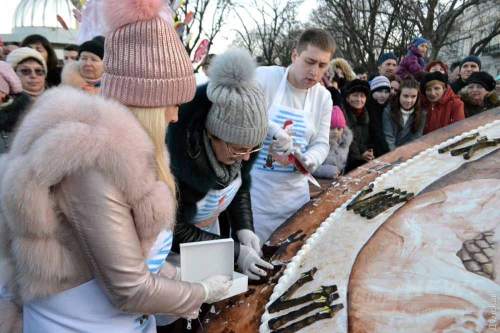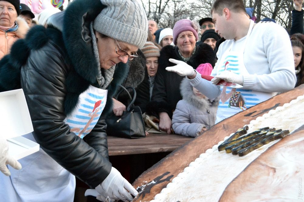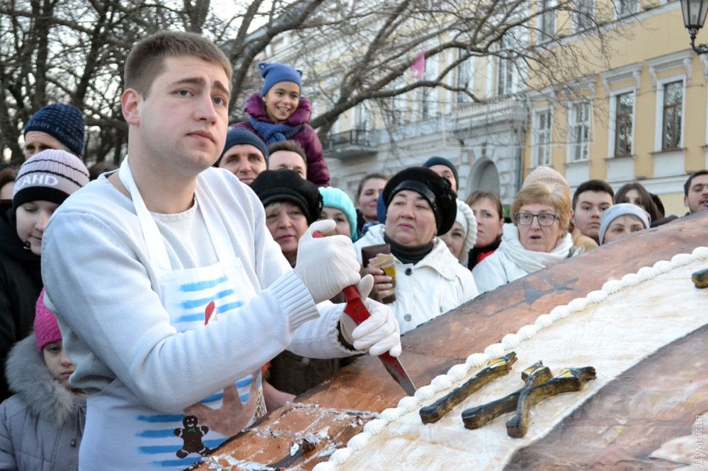 На площади возле Дюка одесситов угощали 400-килограммовым пряничным тортом